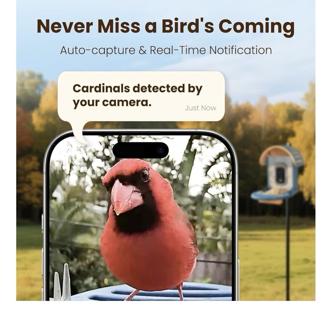 VINGUYS Bird Feeder with Camera, Smart Bird Feeder, Auto-Capture 2.5K UHD - Blue