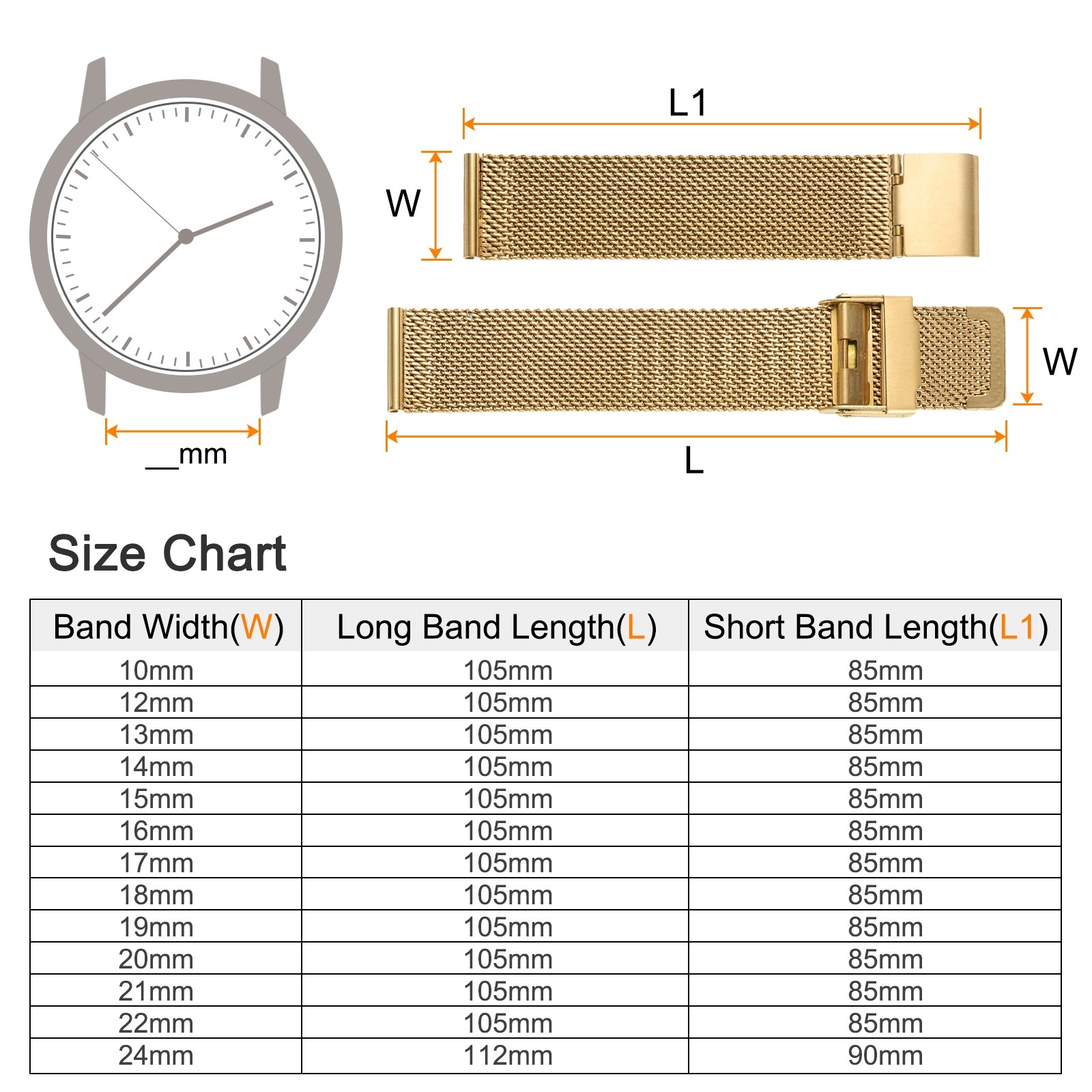 316L Stainless Steel Mesh Watch Band 18mm Quick Release Adjust Strap, Gold