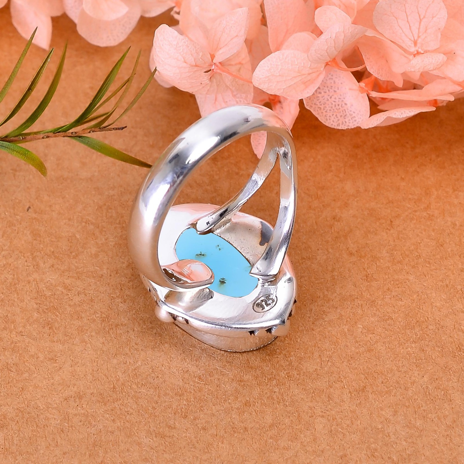 как выглядит Natural USA Smithsonite Ring 925 Sterling Silver Cocktail Retro Fine Jewelry New фото