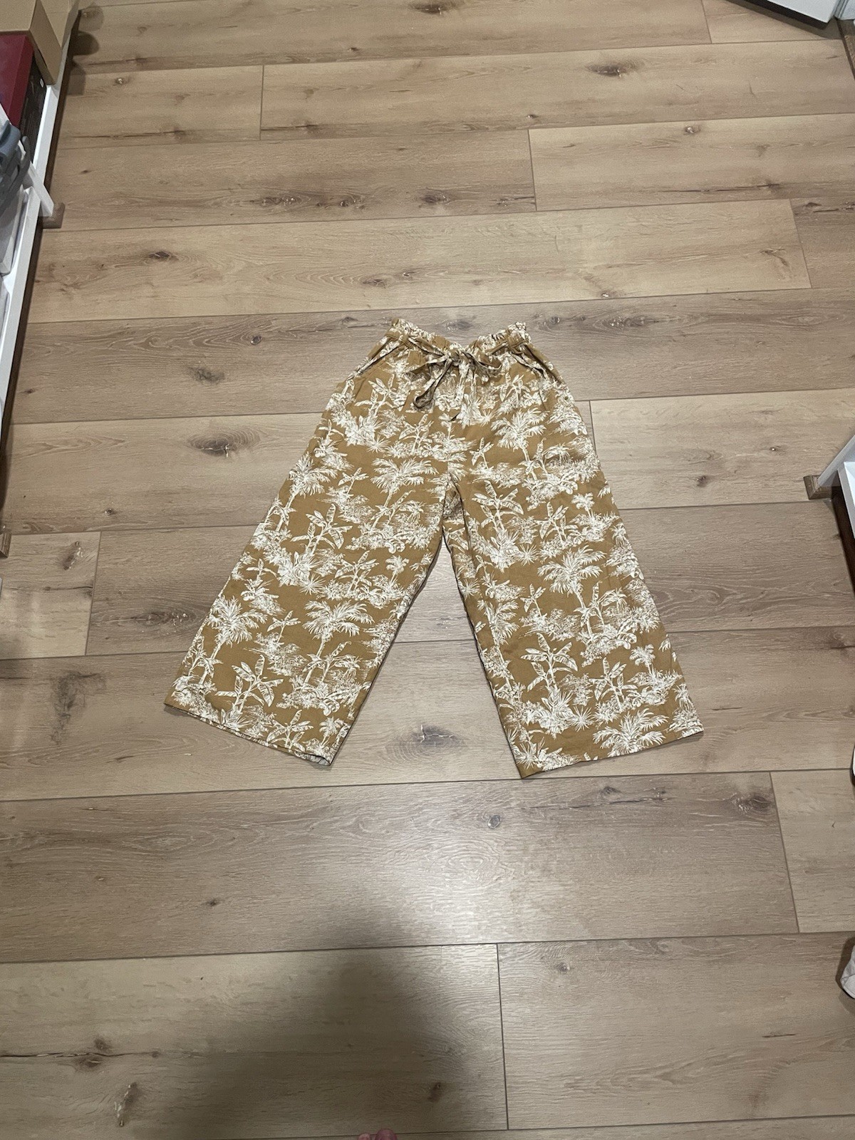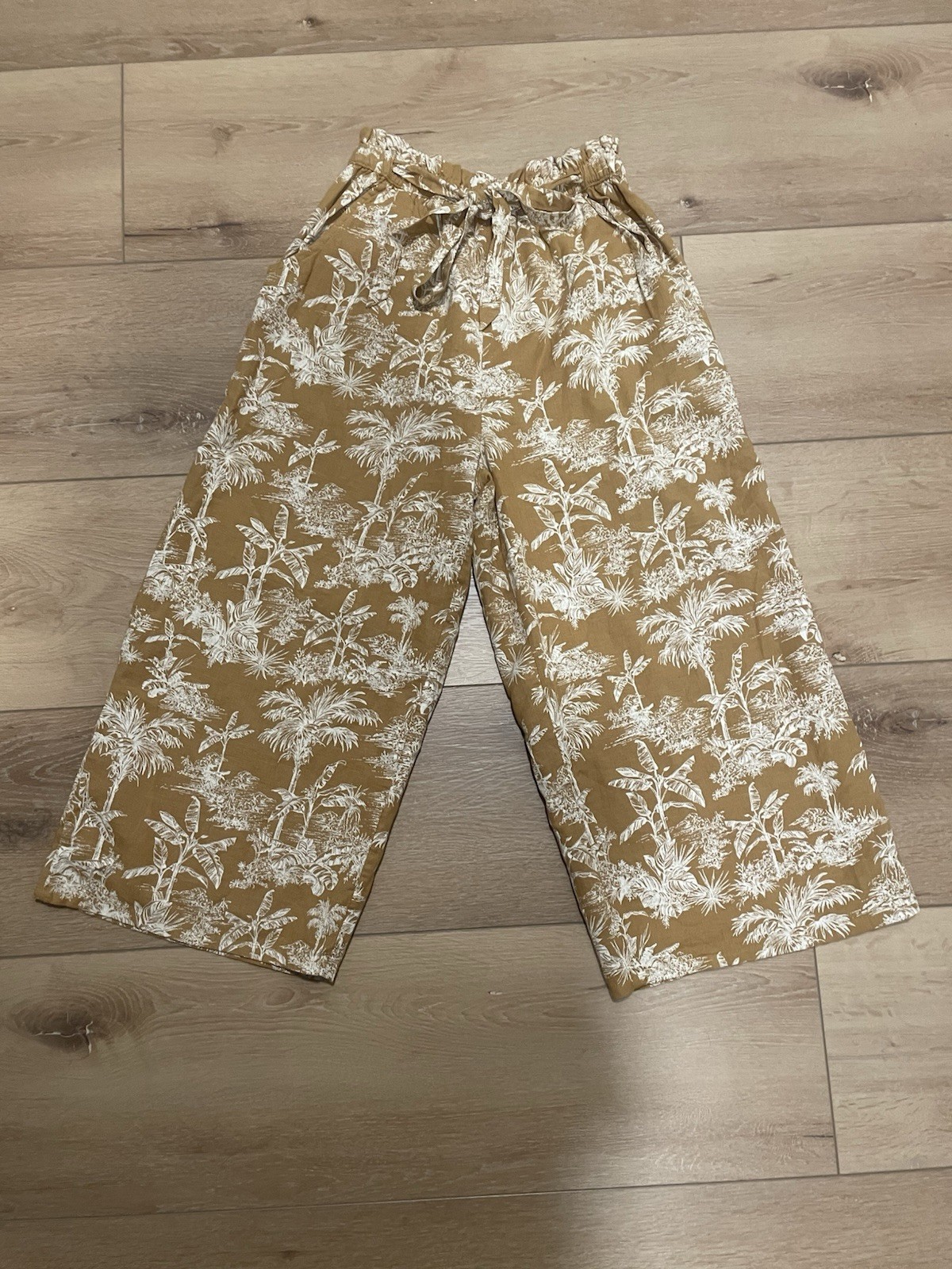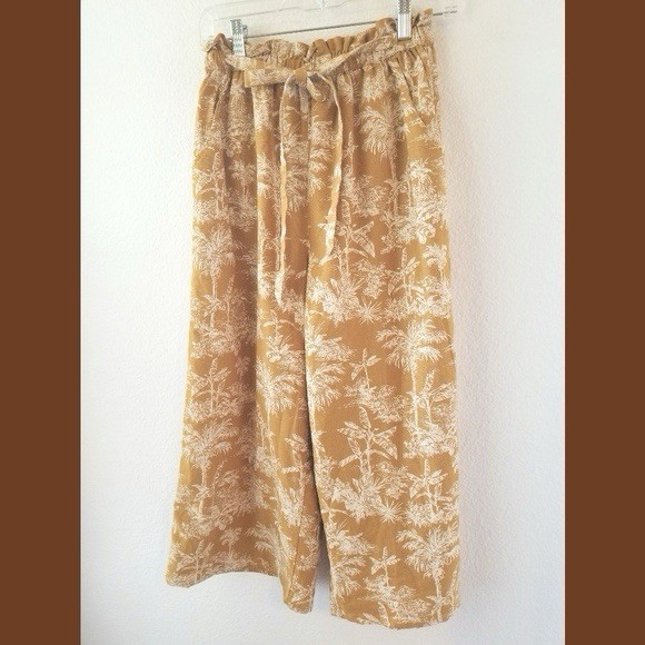 American Eagle Yellow Women's Floral Wide-Leg Pants Elastic Waistband Size S