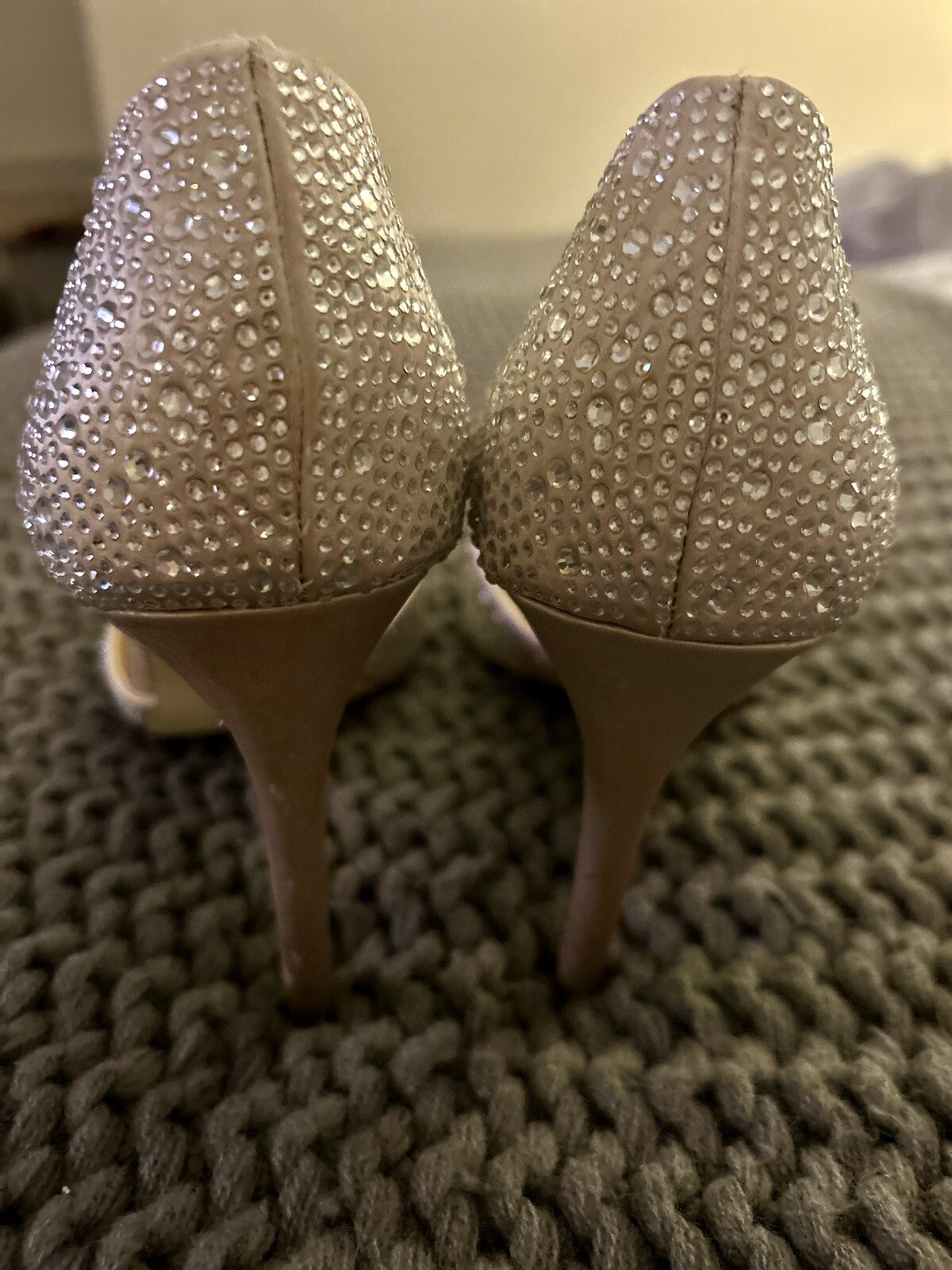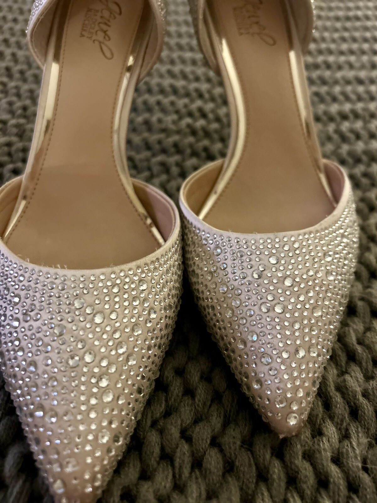 BADGLEY MISCHKA Jewel Shoes Heels Sz 9 Bridal Black Tie Party Champagne Color
