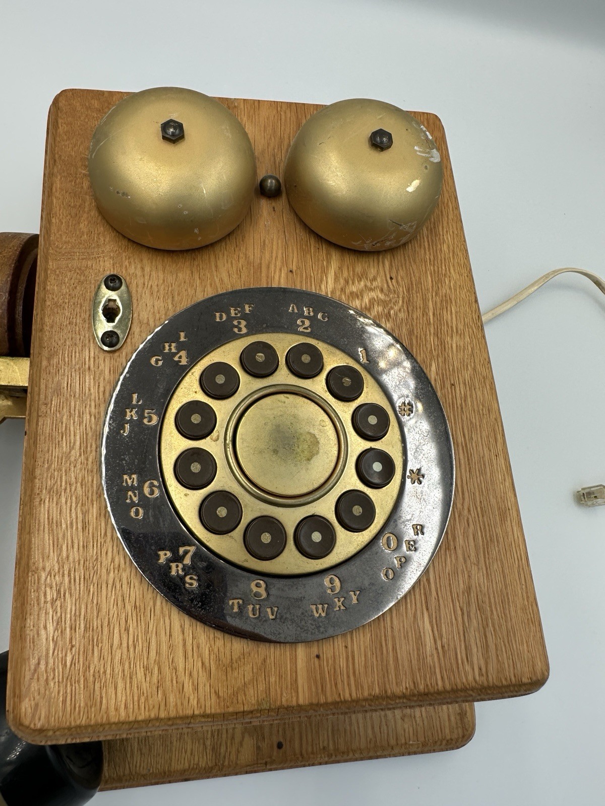 как выглядит Teleconcepts Country Talk Antique Wall Phone Wood And Brass 559146 фото