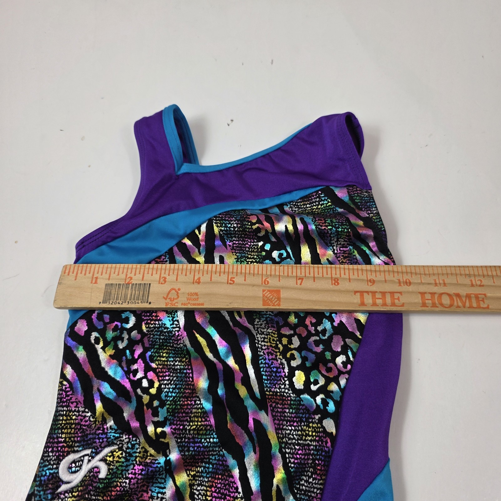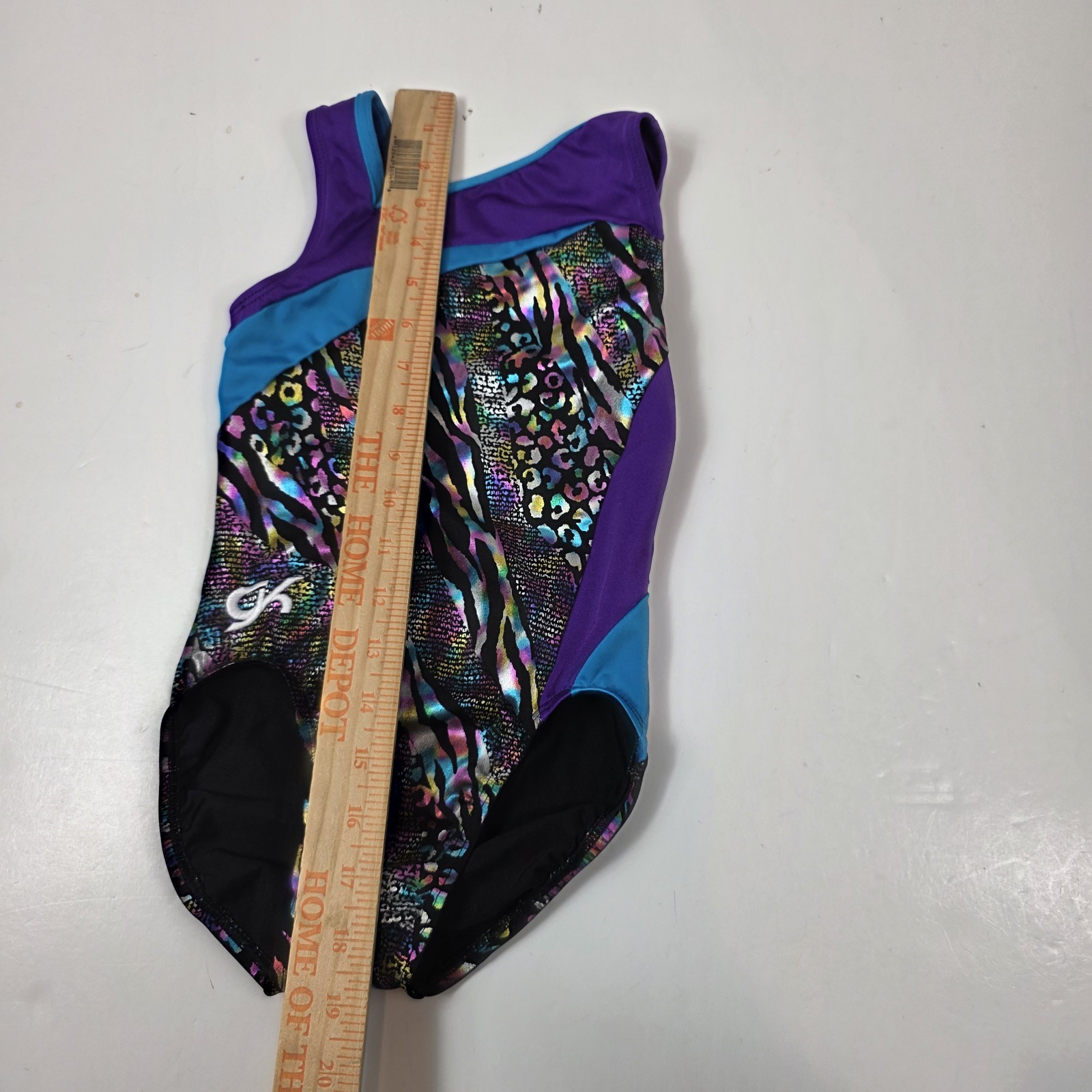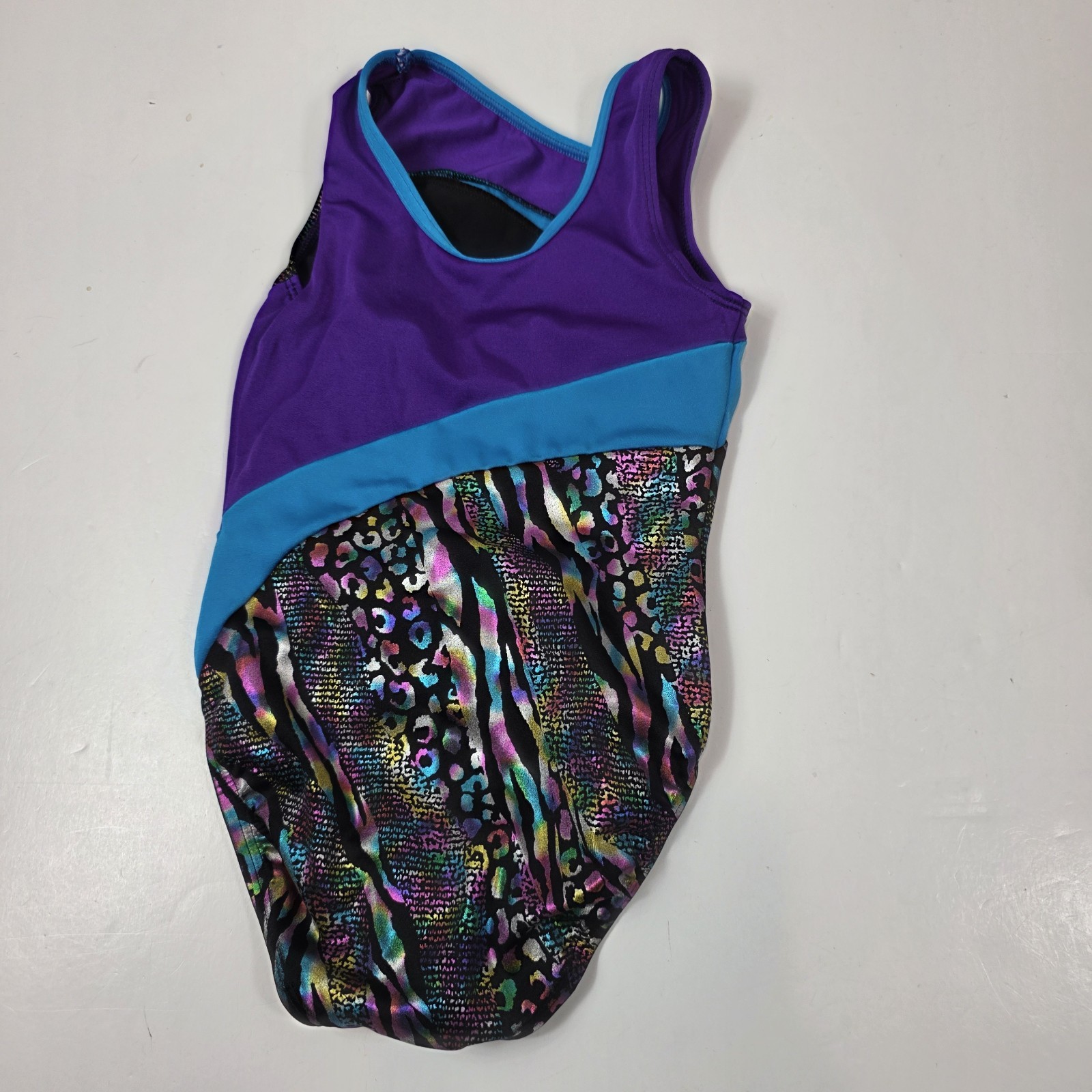 GK Child Medium CM Sleeveless Foil Gymnastics Leotard Colorful Animal Print