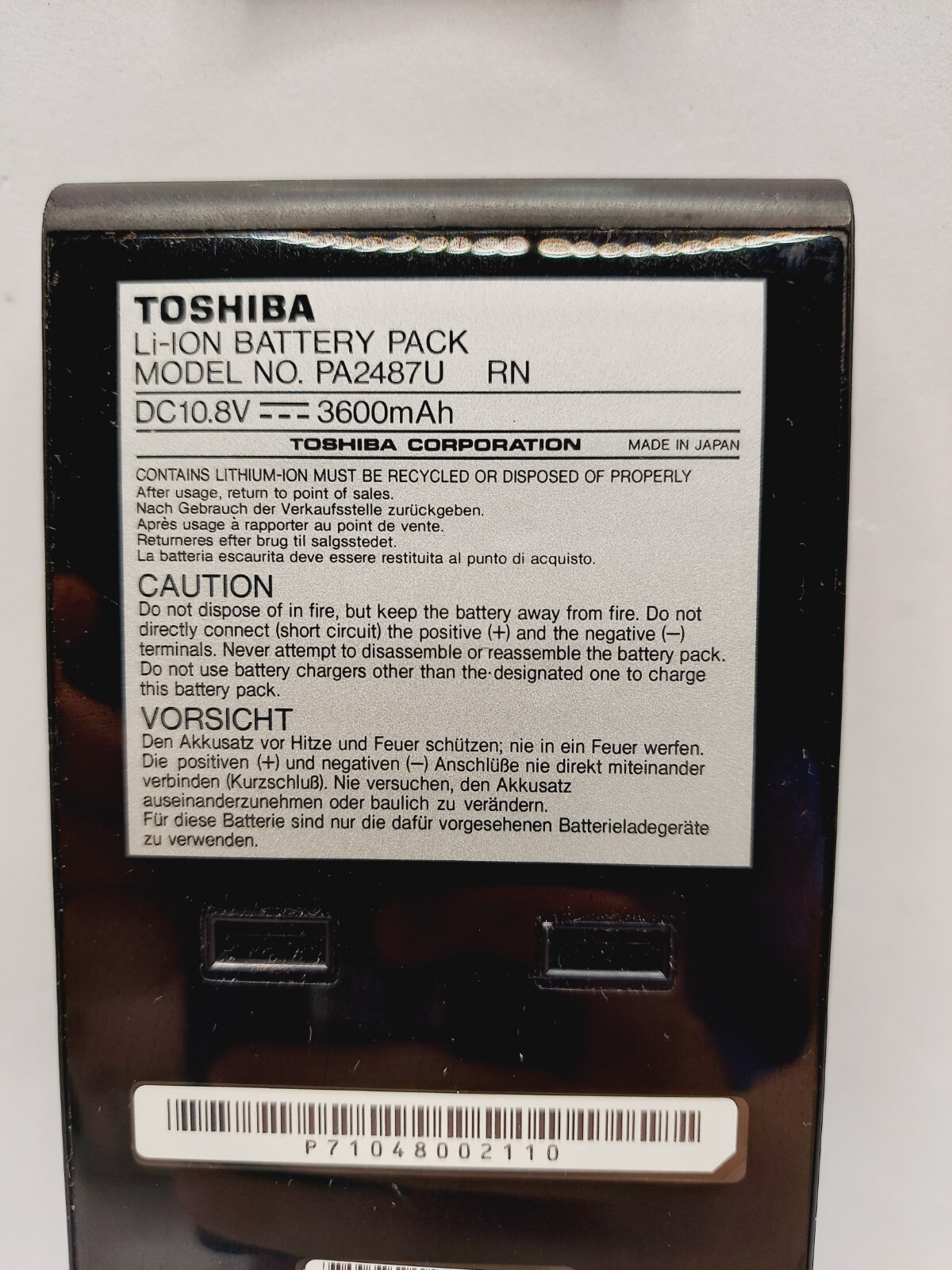 Toshiba Battery Pack Li-ION PA2487U RN 10.8V DC 3600mAh -