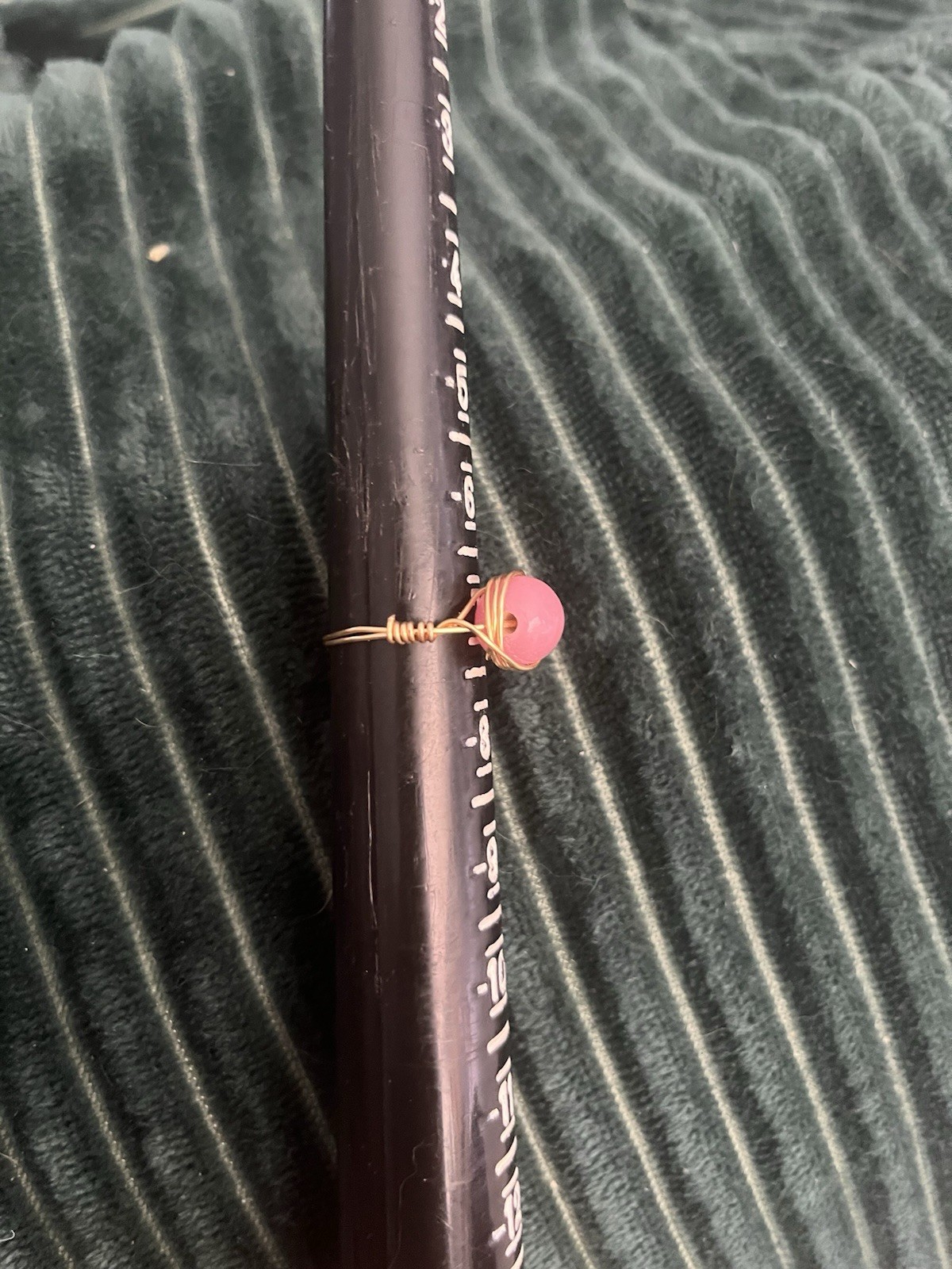 как выглядит Wire Wrapped Ring Wrapped In Gold Colored Wire With Pink Acrylic Bead Size 7 фото