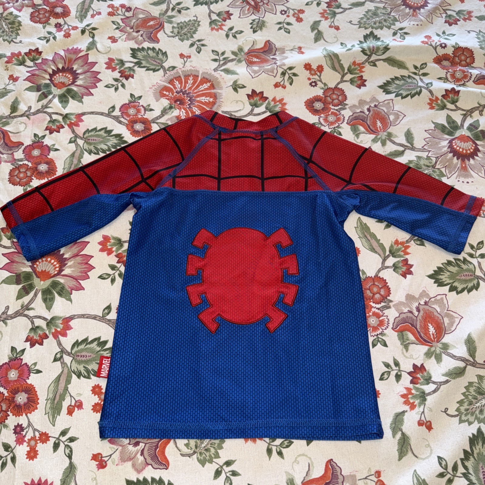 Disney Store boys Red Blue Short Sleeve Marvel Spider Man Swim Rash Guard 5/6