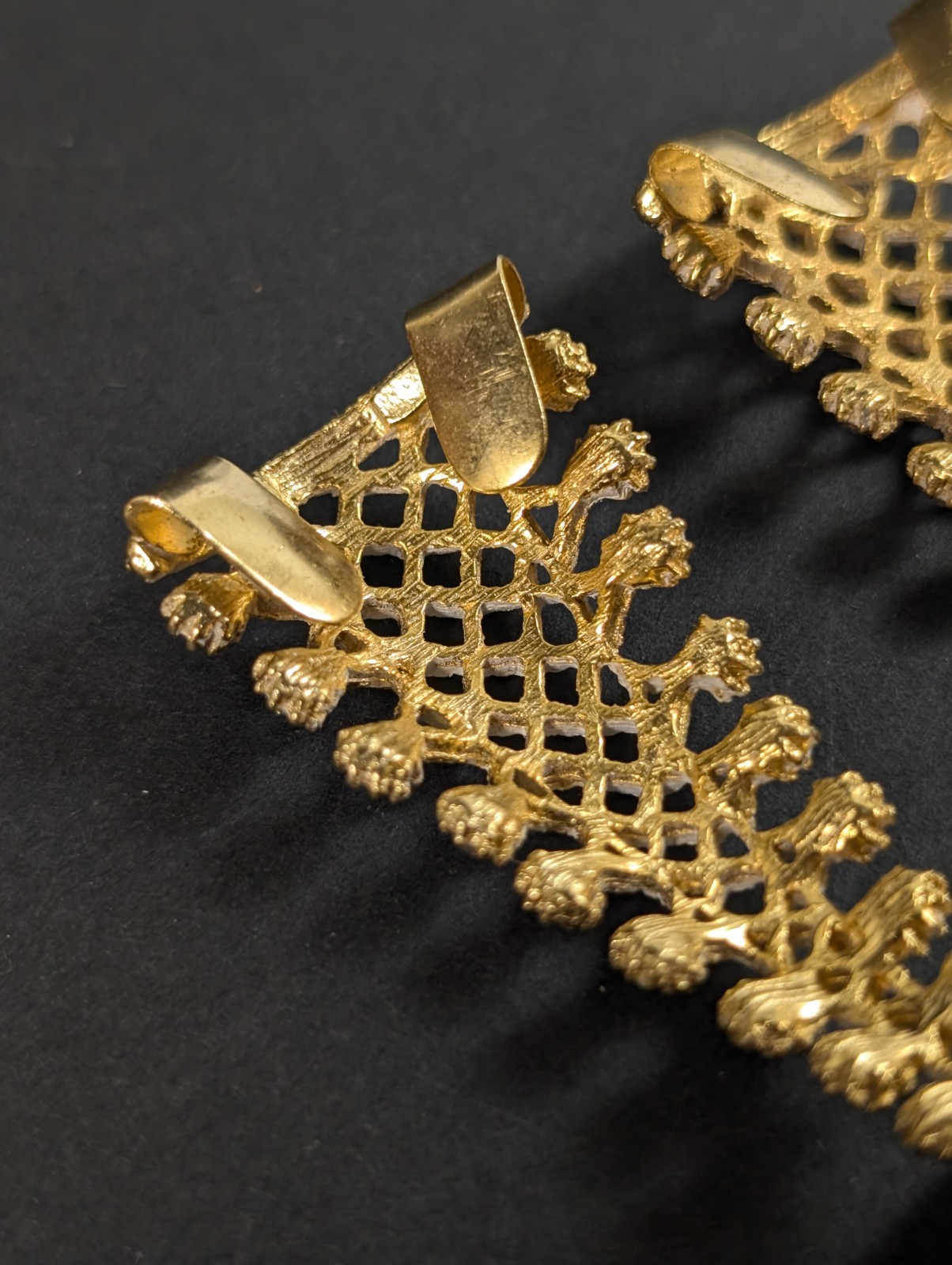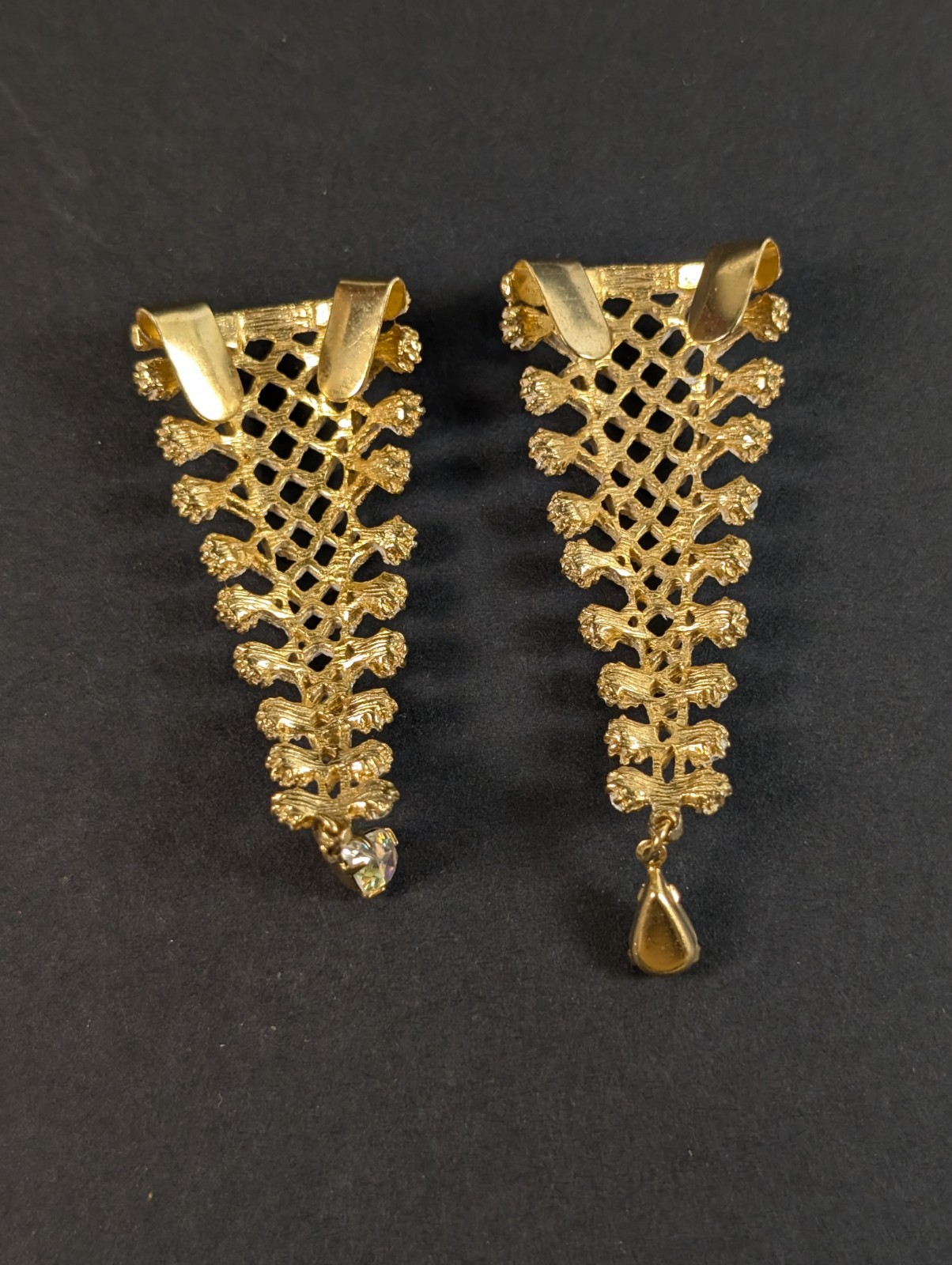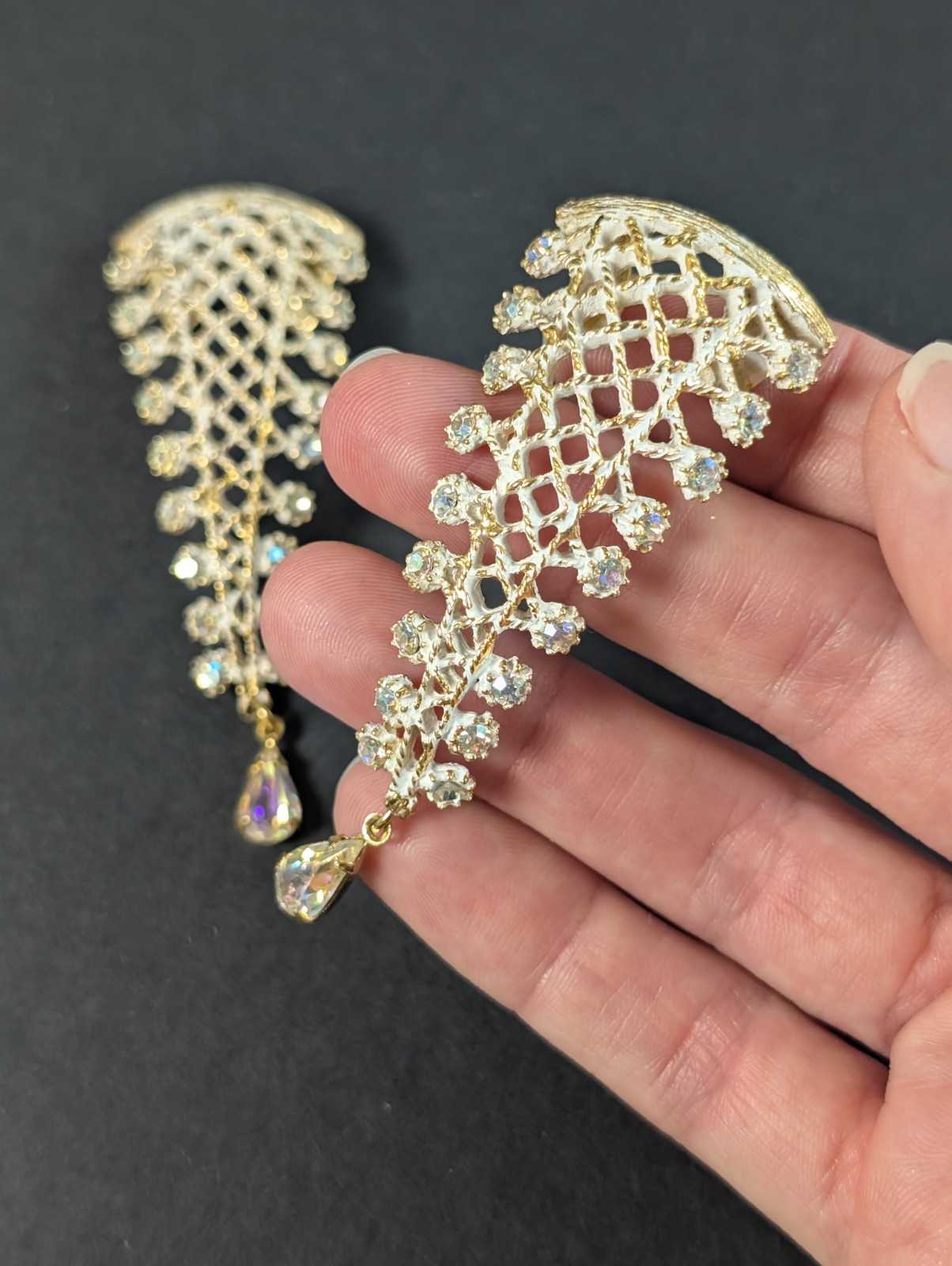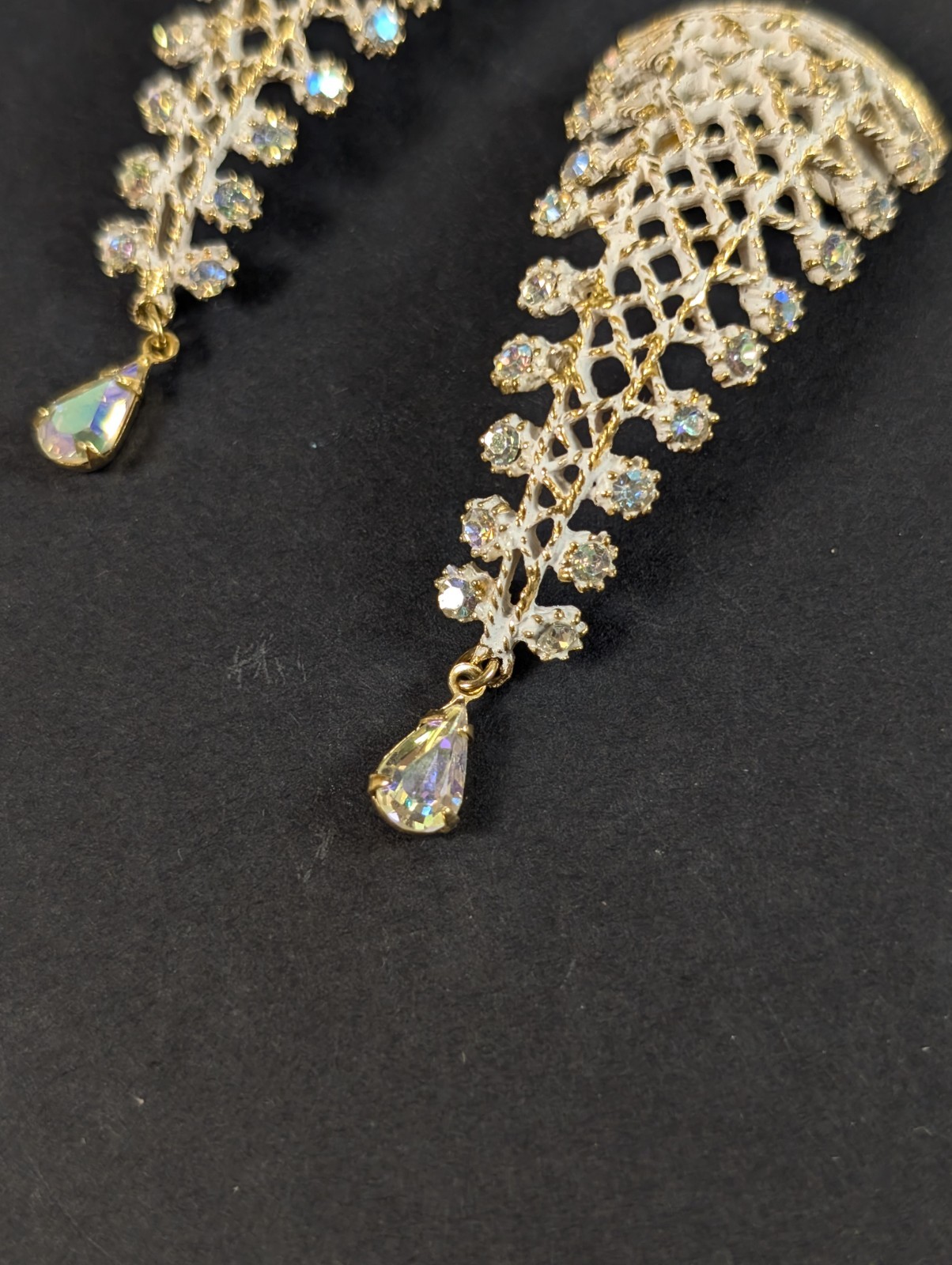 Ornate Vintage Rhinestone Shoes Clips White Enameled 60's 70's Jeweled Disco