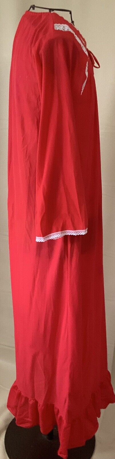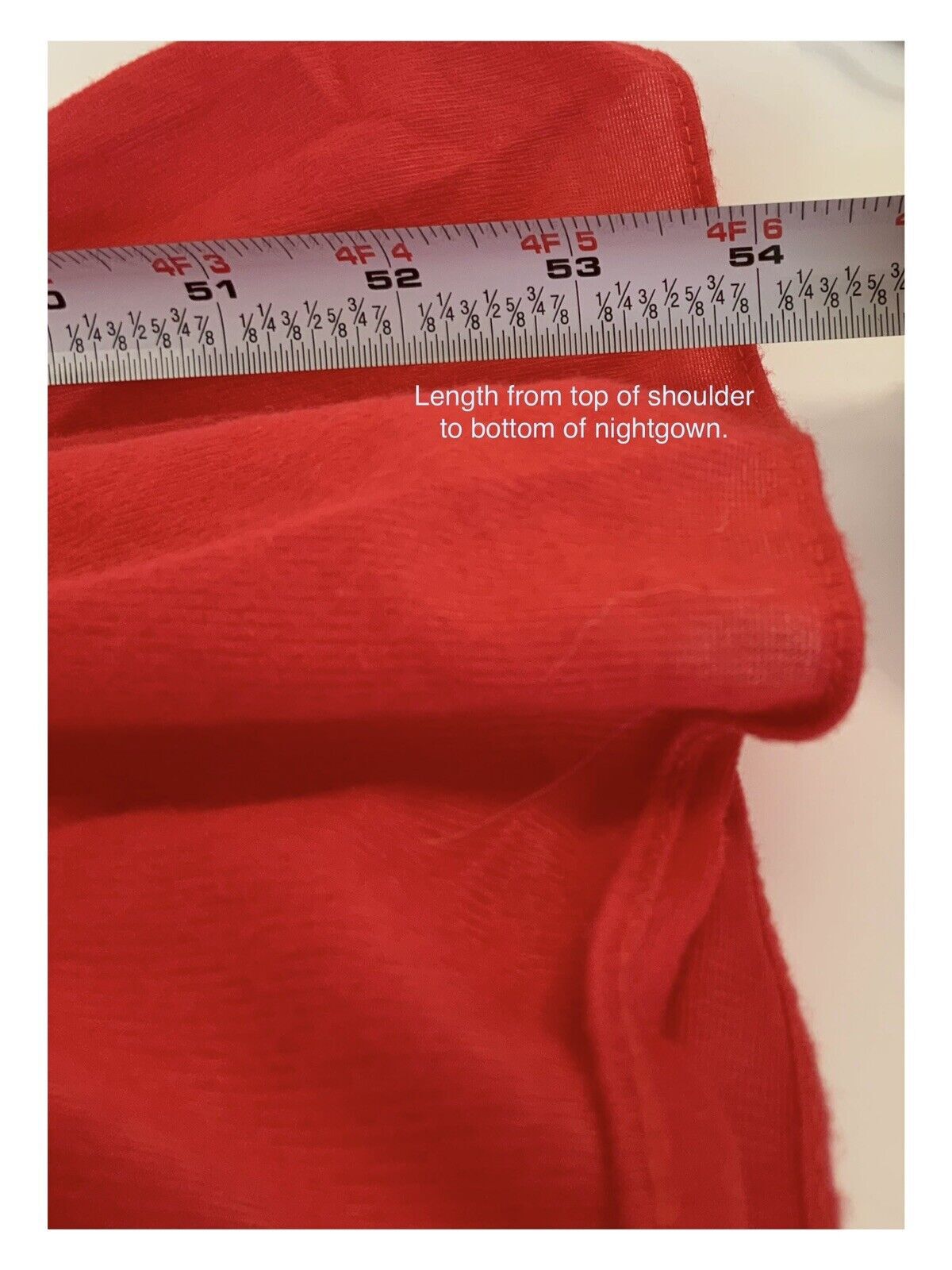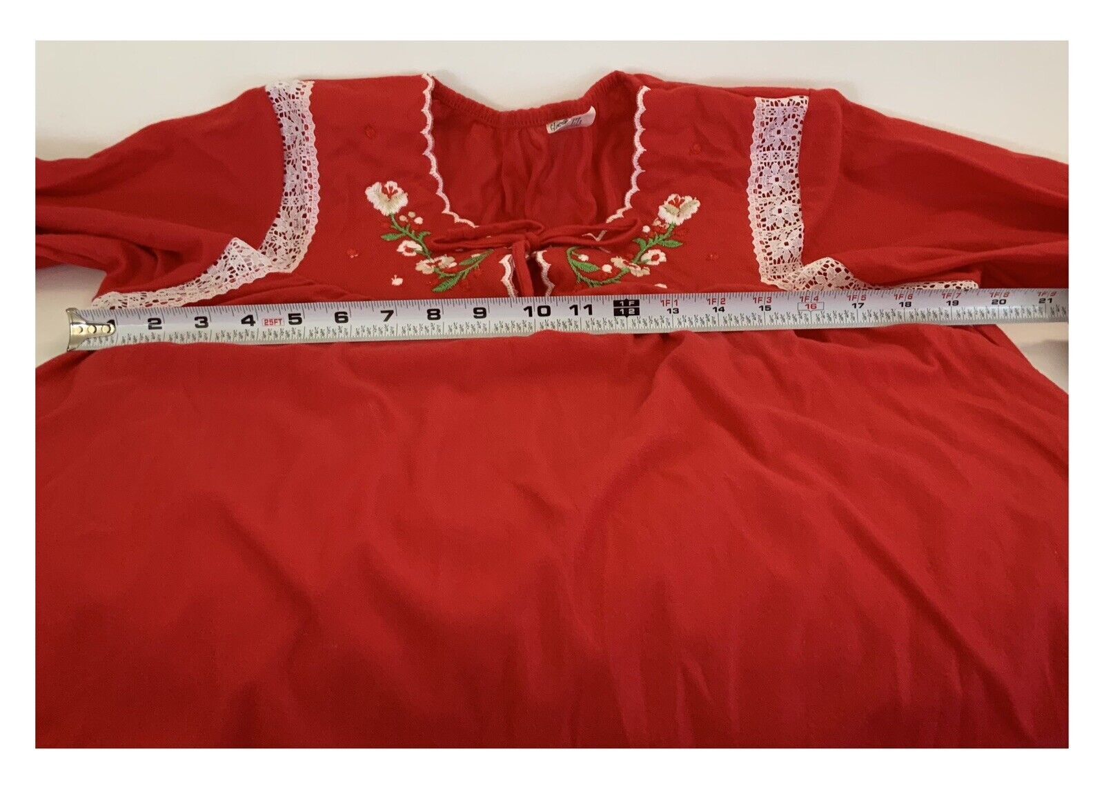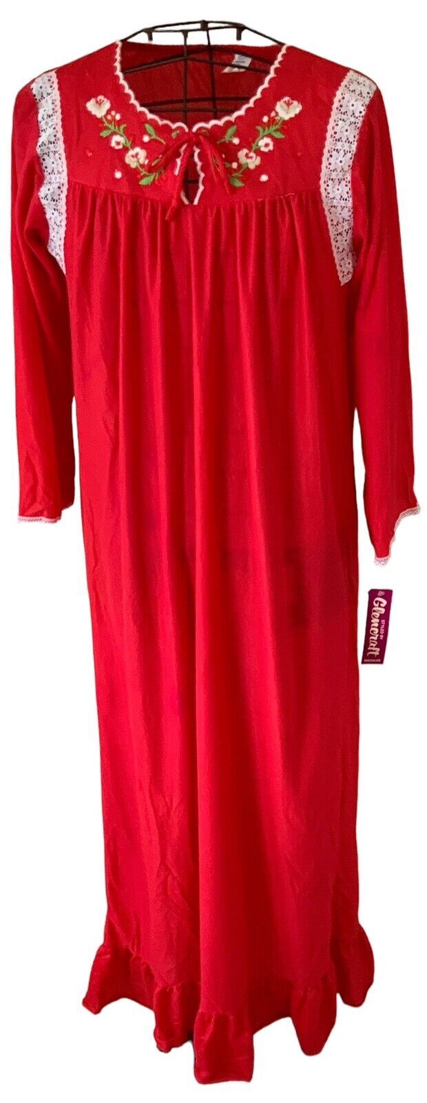 Vtg Glencraft Red Nightgown Embroidered Floral Detail Union Made - SZ MED - NWT