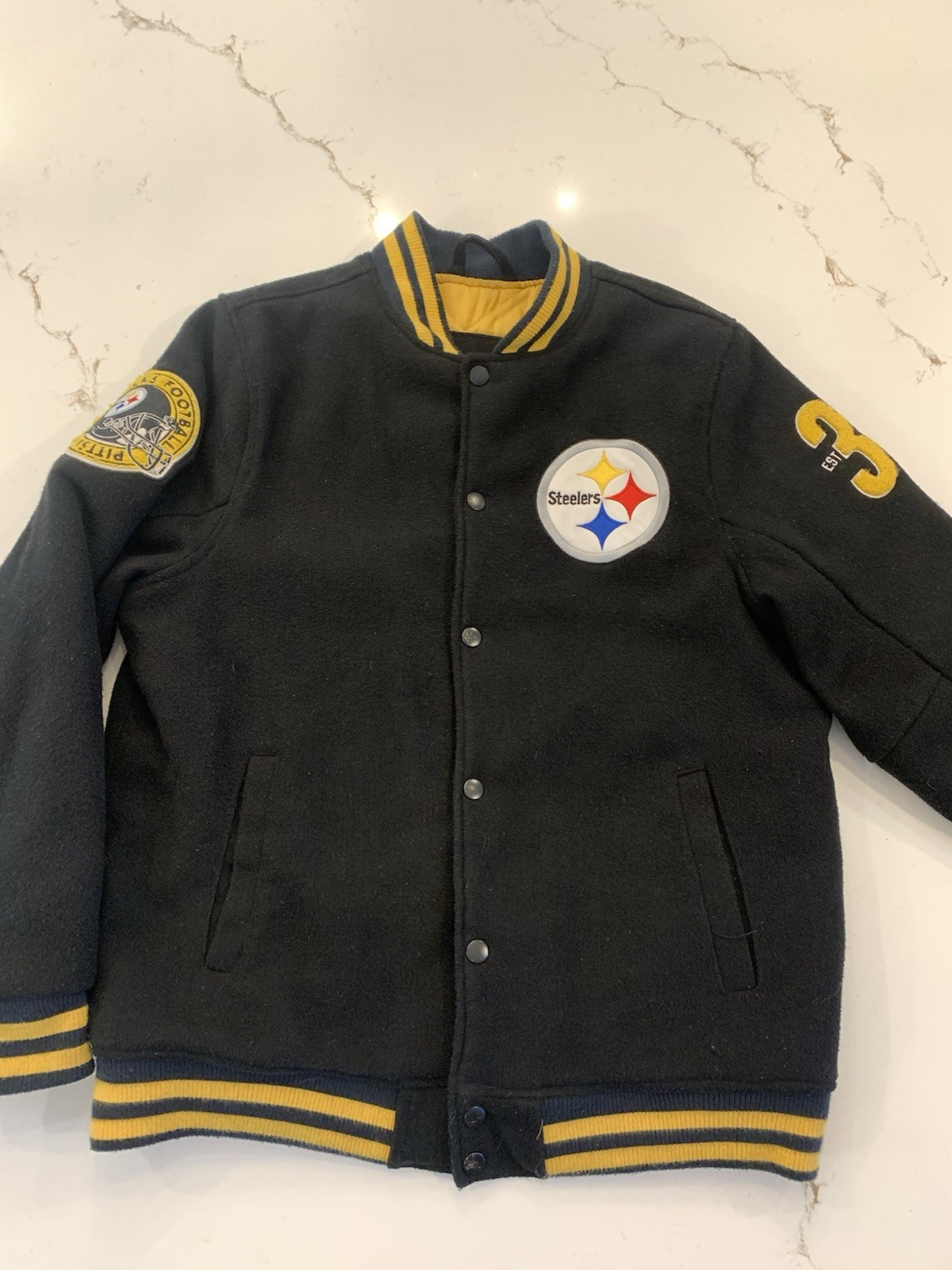 Pittsburgh Steelers Varsity Football Jacket Youth Size XL Can Fit Men s Small