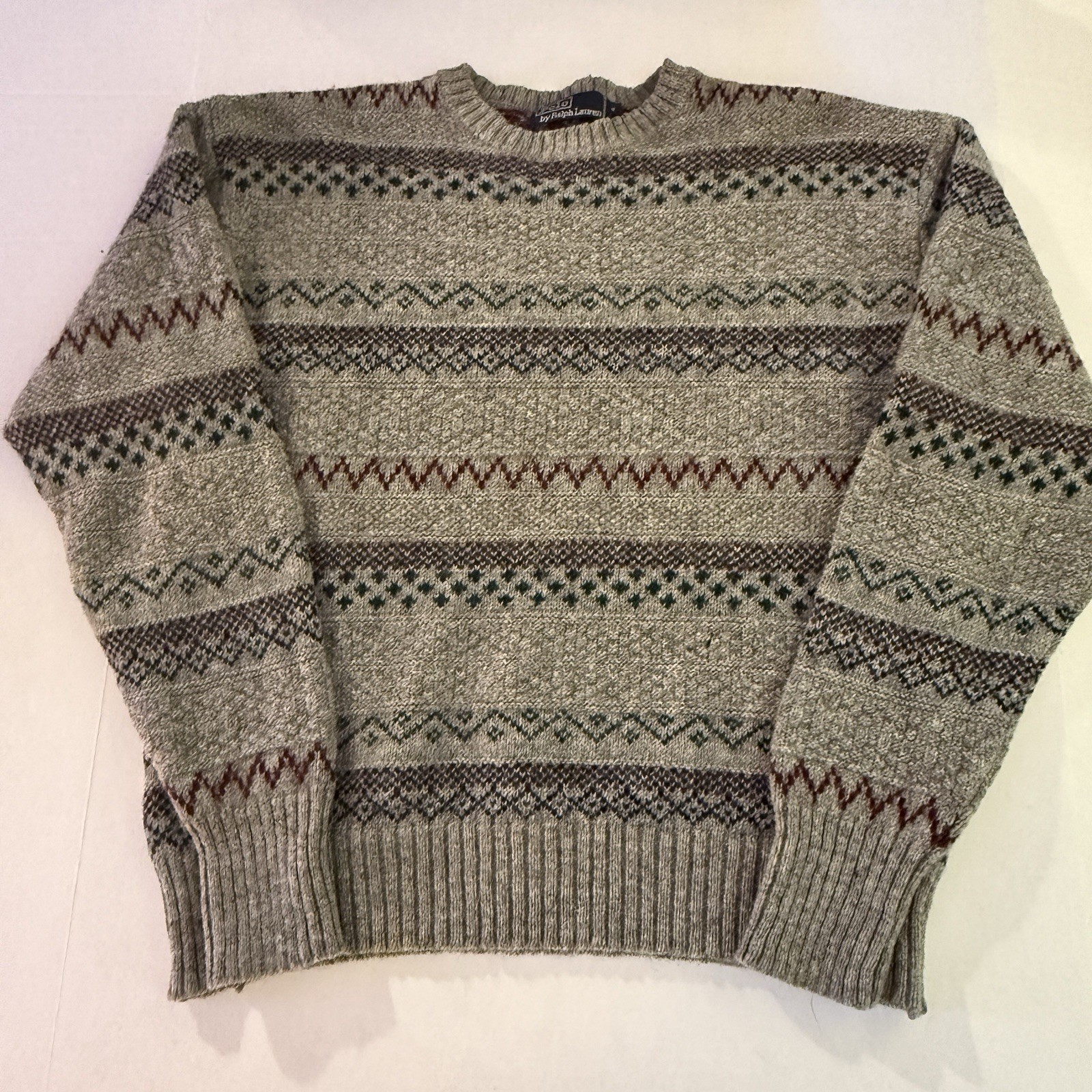 как выглядит Vintage Polo Ralph Lauren Gray Wool Fair Isle Knit Pullover Jumper Sweater Sz XL фото