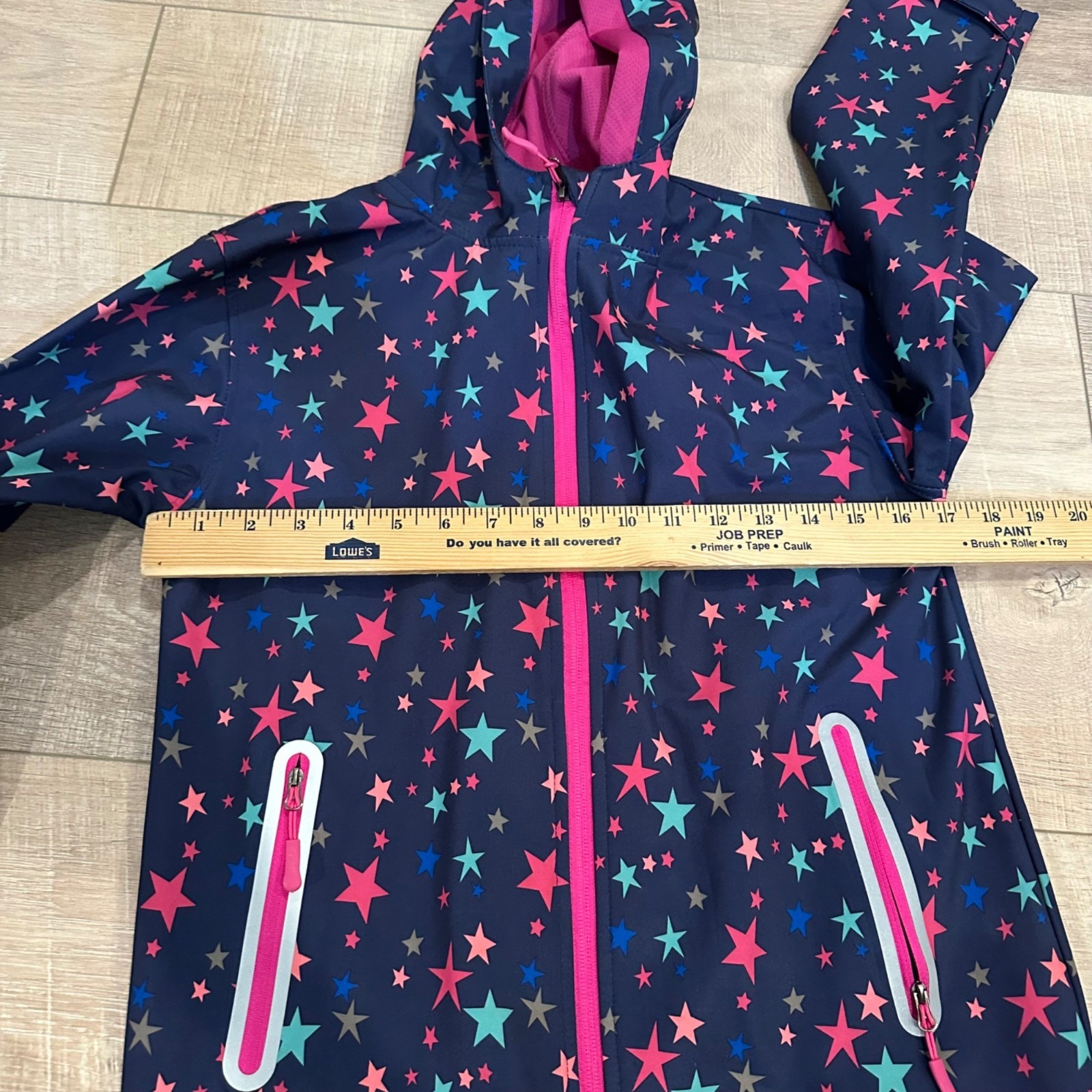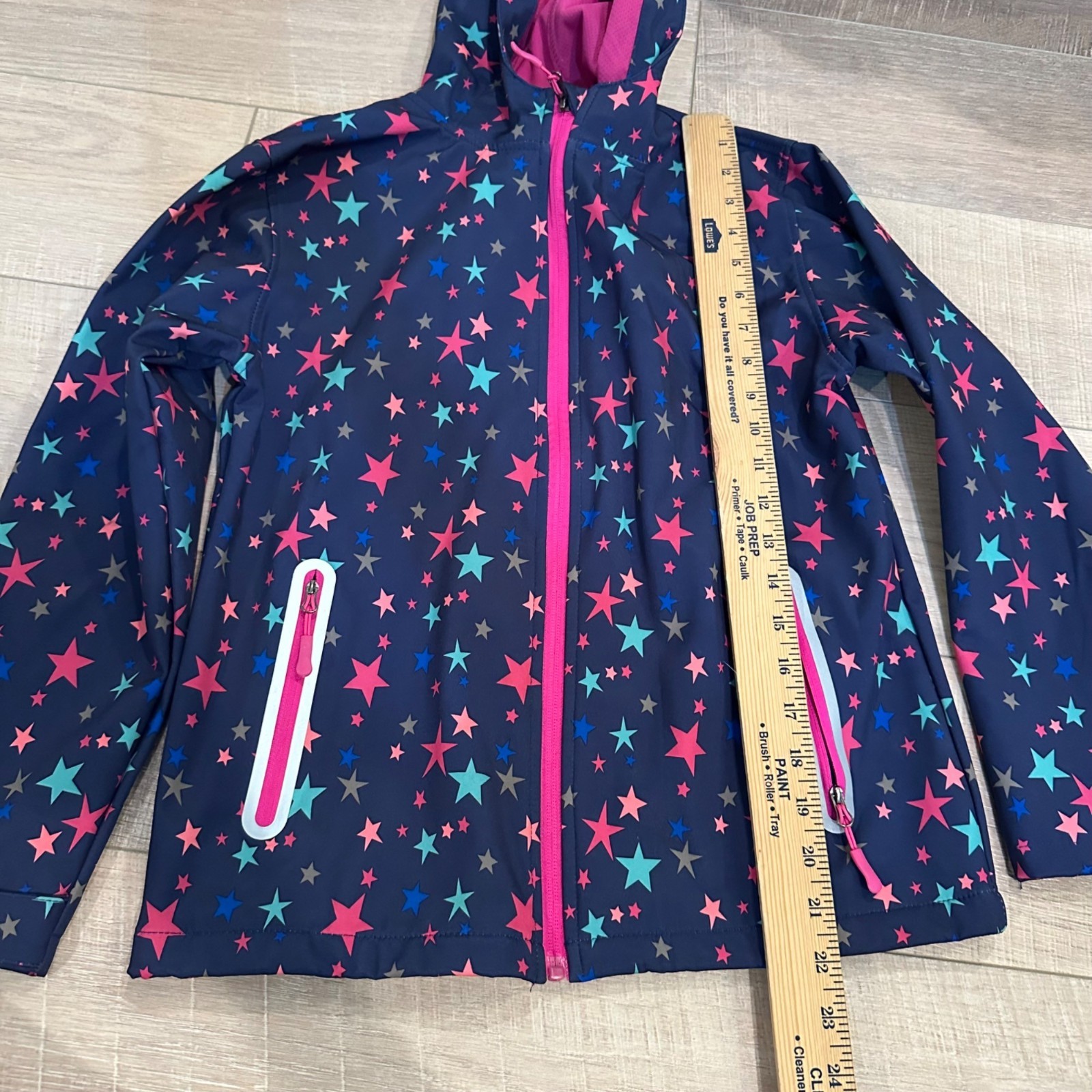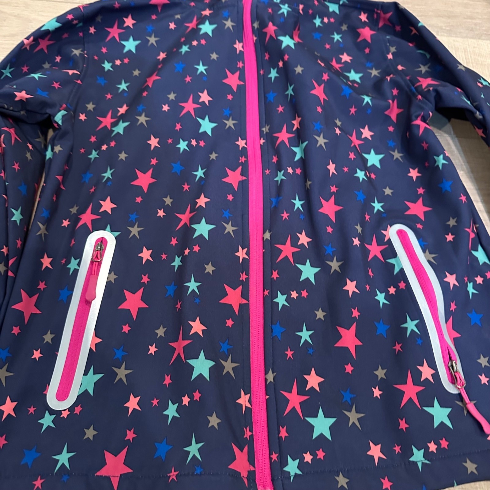 как выглядит JINGLE BONGALA GIRLS HOODED RAIN JACKET 140 US SIZE 10 NAVY BLUE STARS фото
