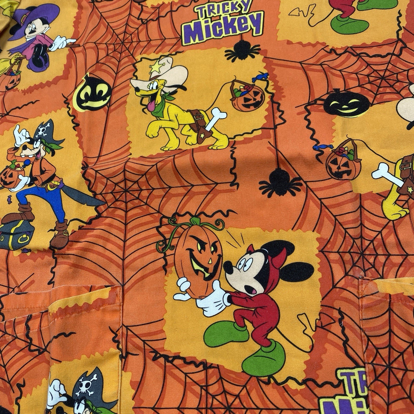 Disney Scrub Top Ladies Medium Orange Mickey Minnie Mouse Halloween Womens