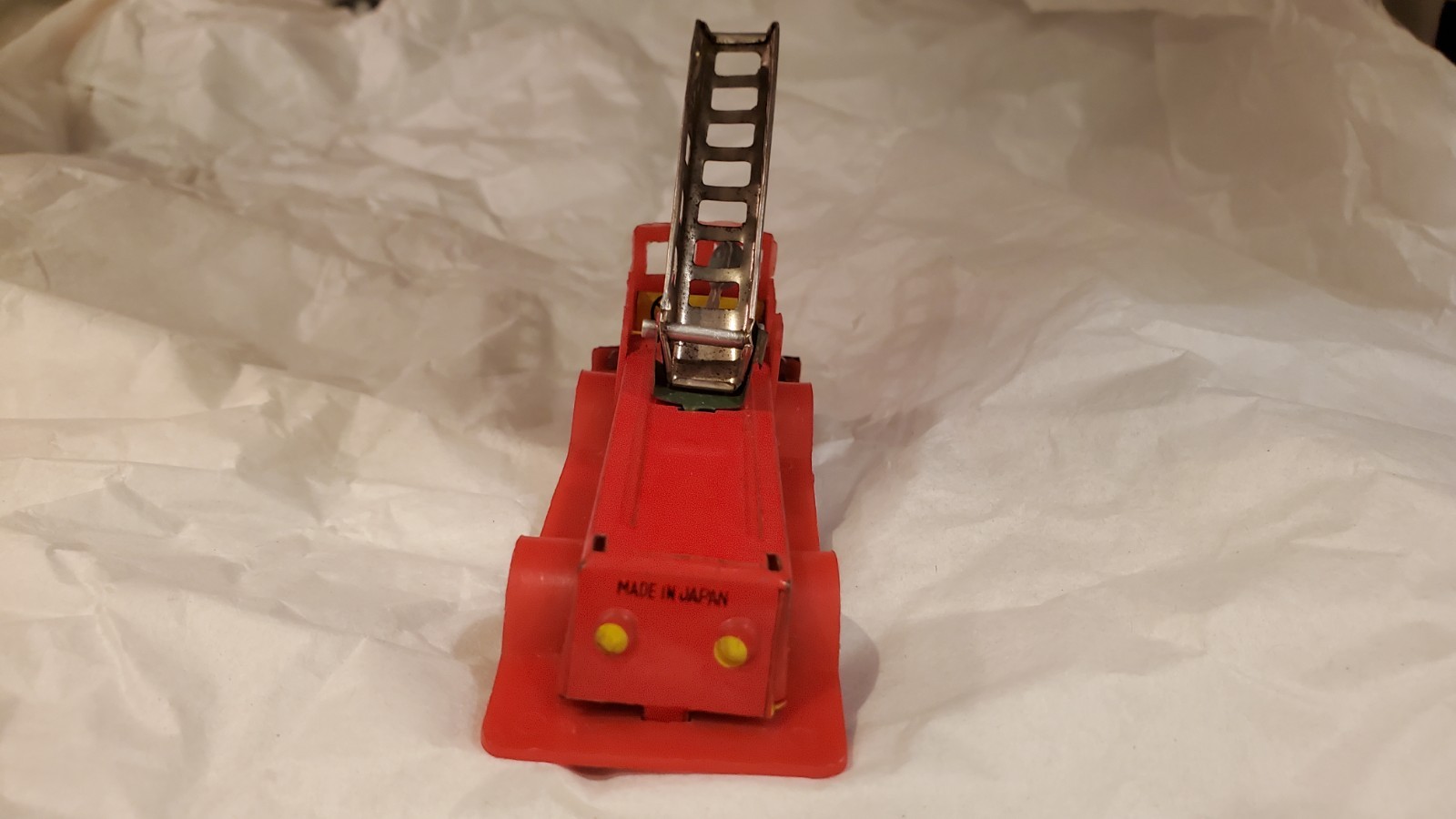 Vintage Fire Truck Tin Friction Made In Japan F.D Ladder Truck 4