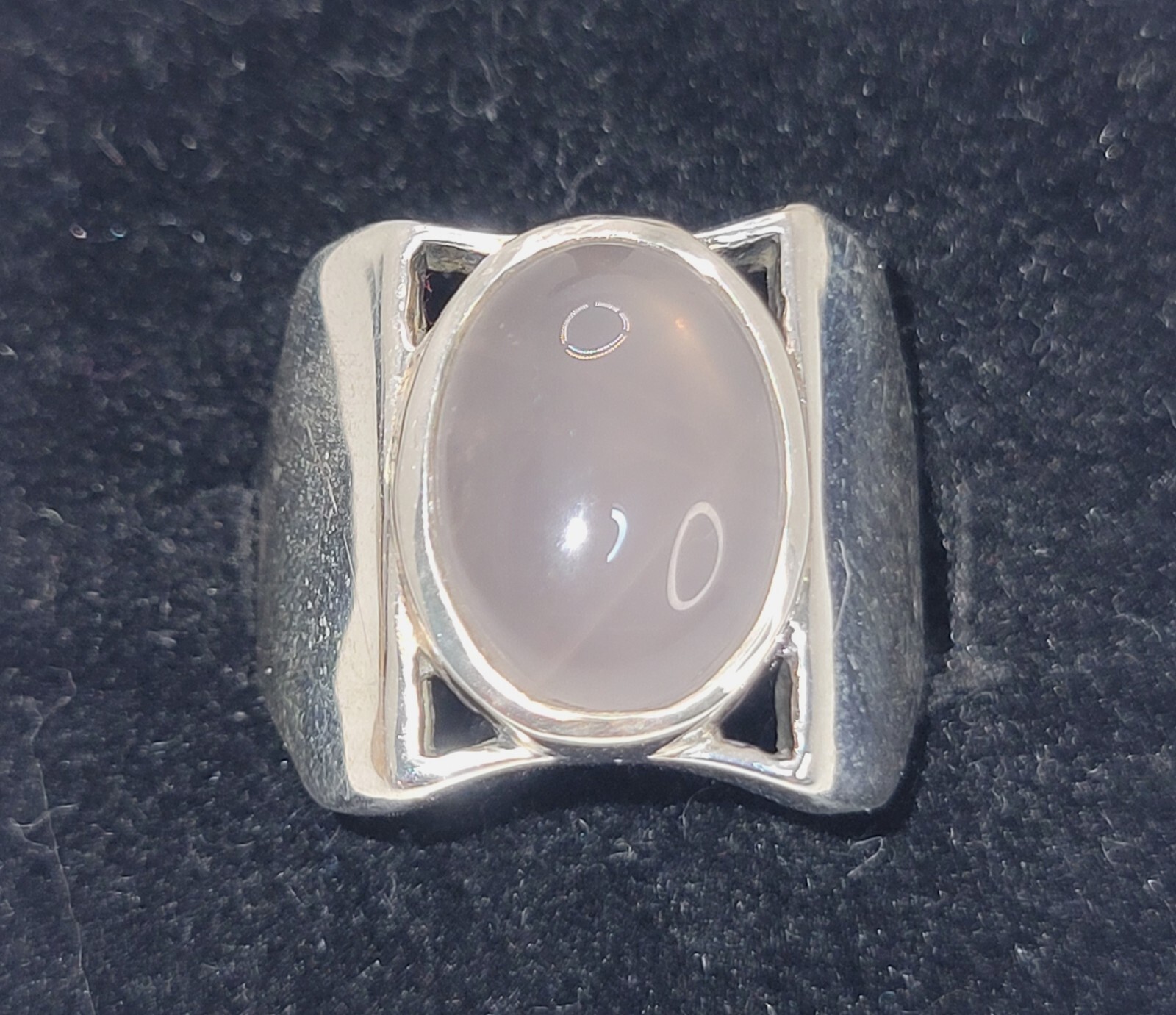 как выглядит Handmade Large Natural Rose Quartz Ring 925 Sterling Silver Adjustable Size 7.25 фото