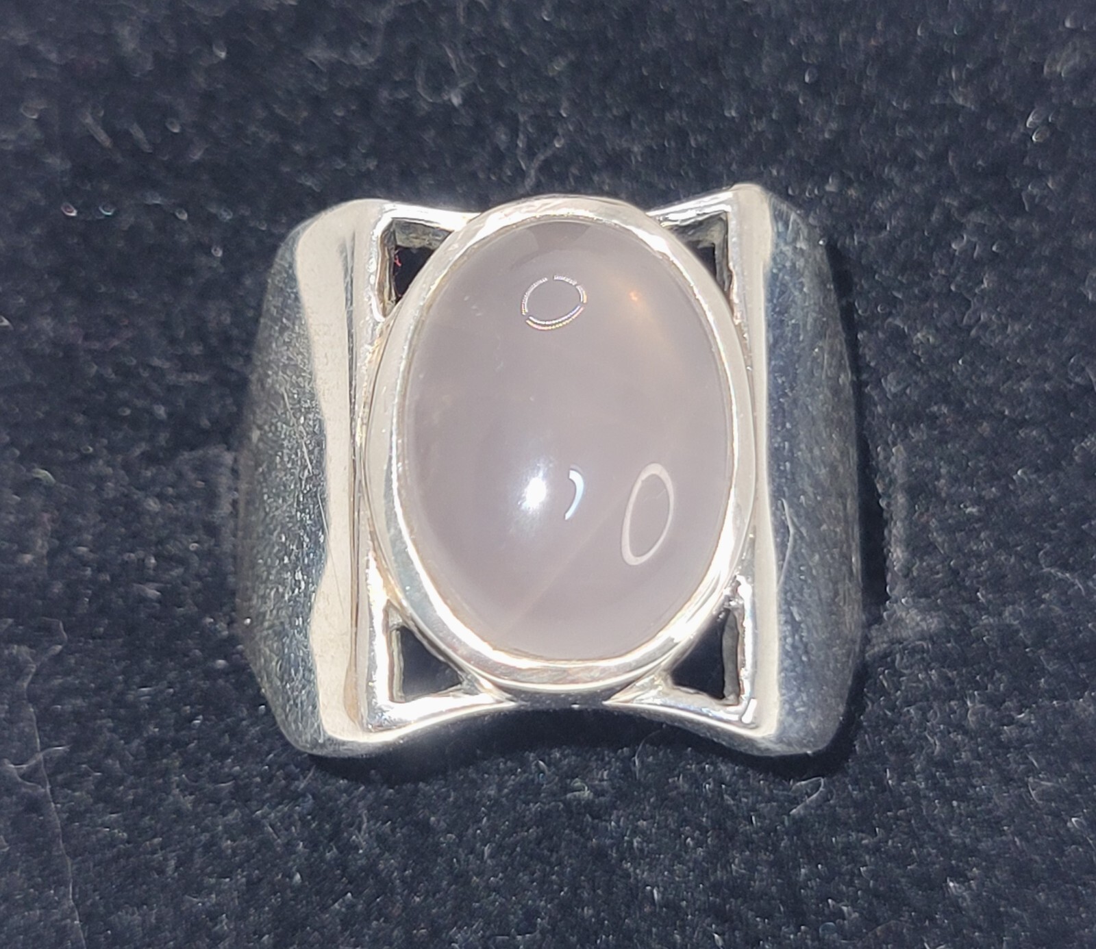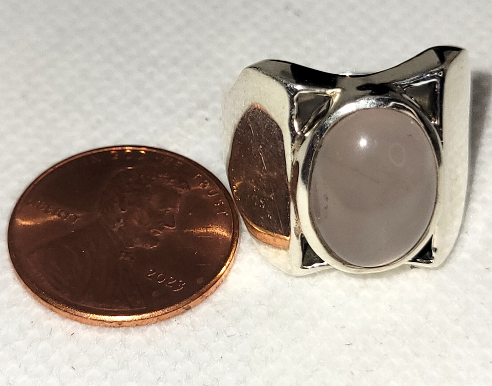 Handmade Large Natural Rose Quartz Ring 925 Sterling Silver Adjustable Size 7.25