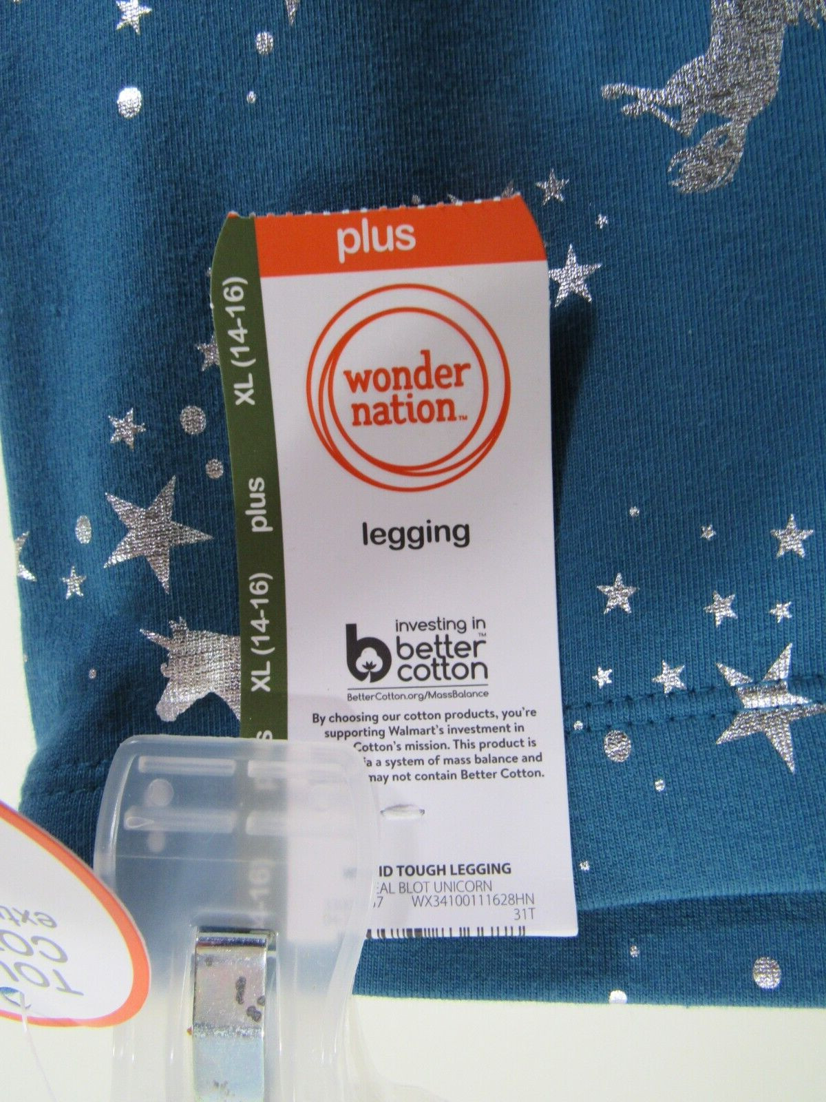New Wonder Nation Girls Legging Size XL 14 16 Plus Teal Silver Unicorn Stars