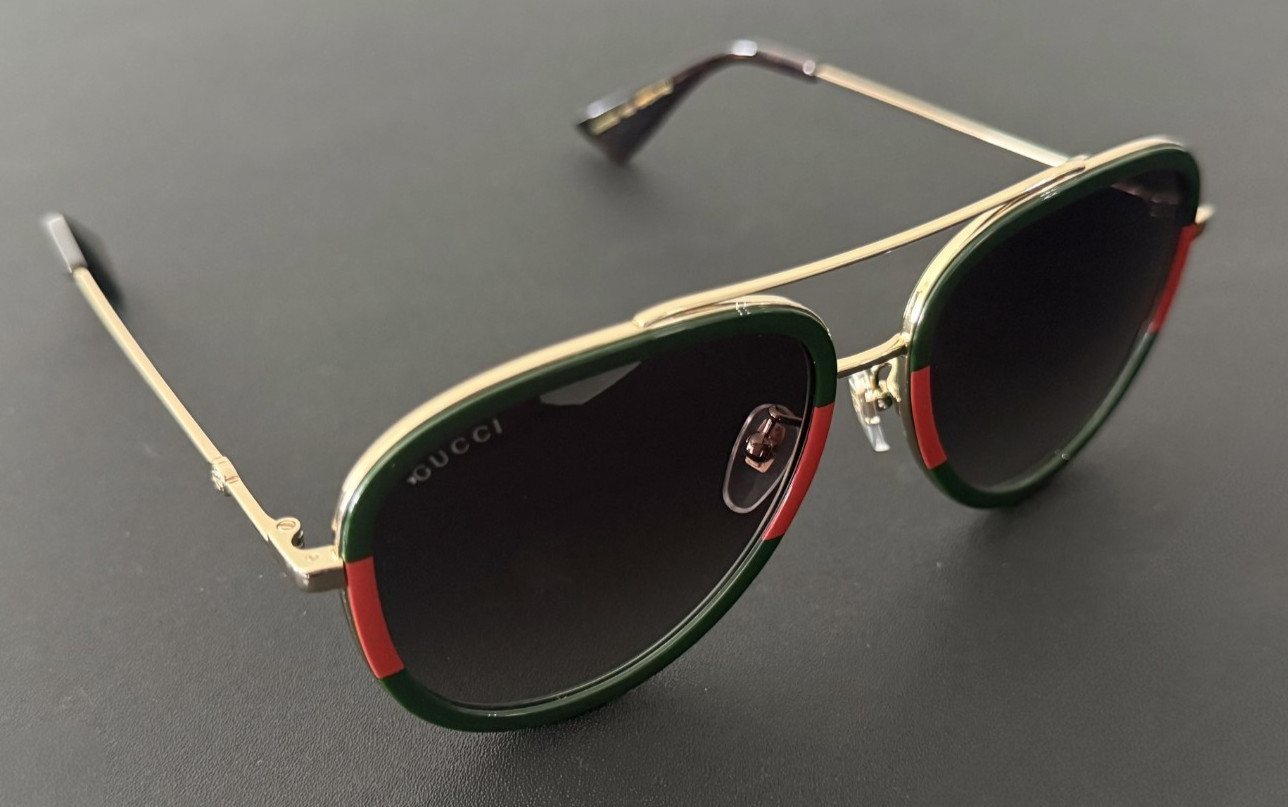 как выглядит Gucci GG0062S Women Aviator Sunglasses Black/Gold Frame фото