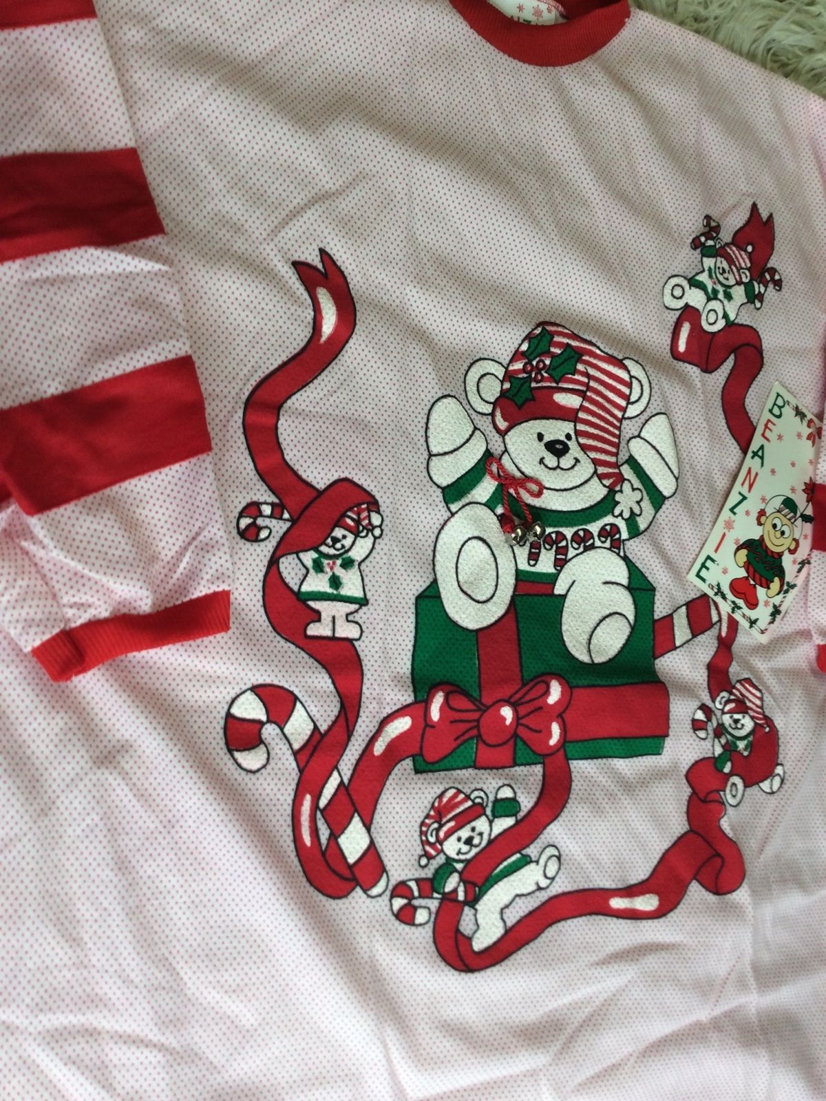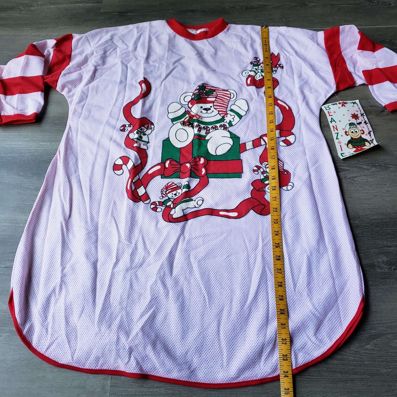 как выглядит NEW VTG 80s Beanzies Holiday Bears Christmas Flannel Nightgown One Size USA Gift фото