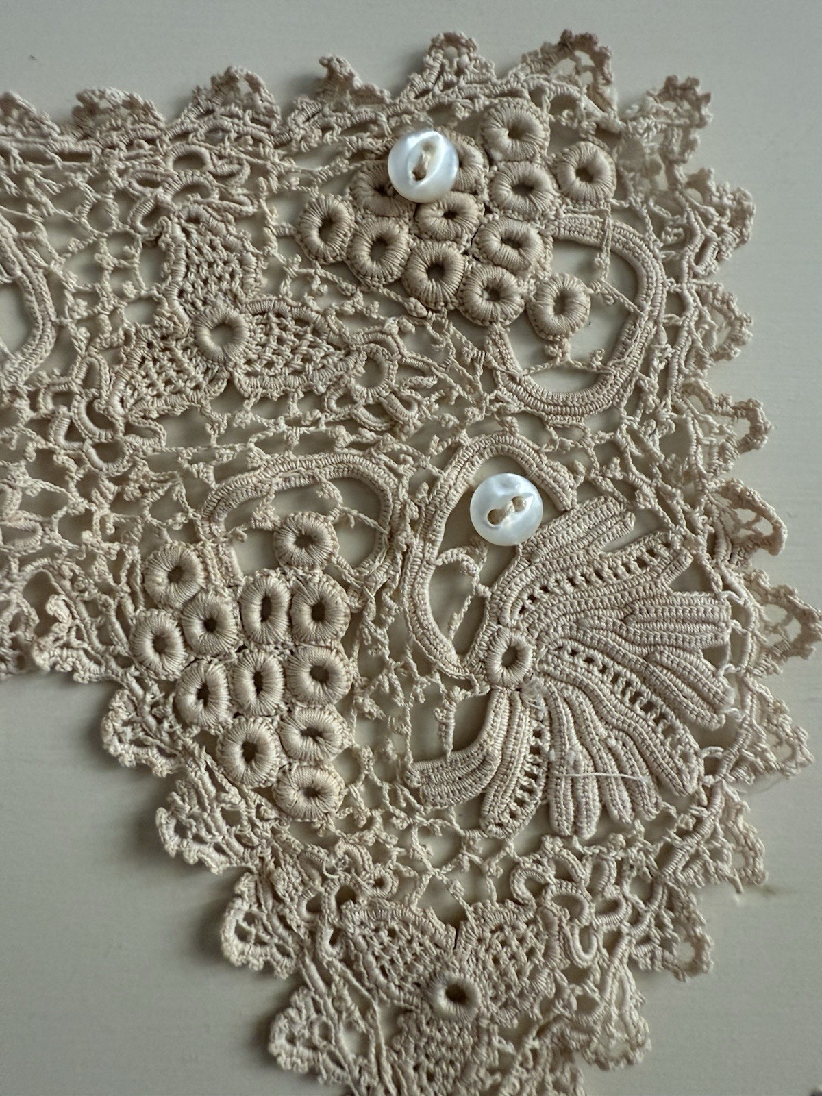 Antique Crocheted VICTORIAN Lace Cuffs Handmade Vintage Collar Edwardian Pair