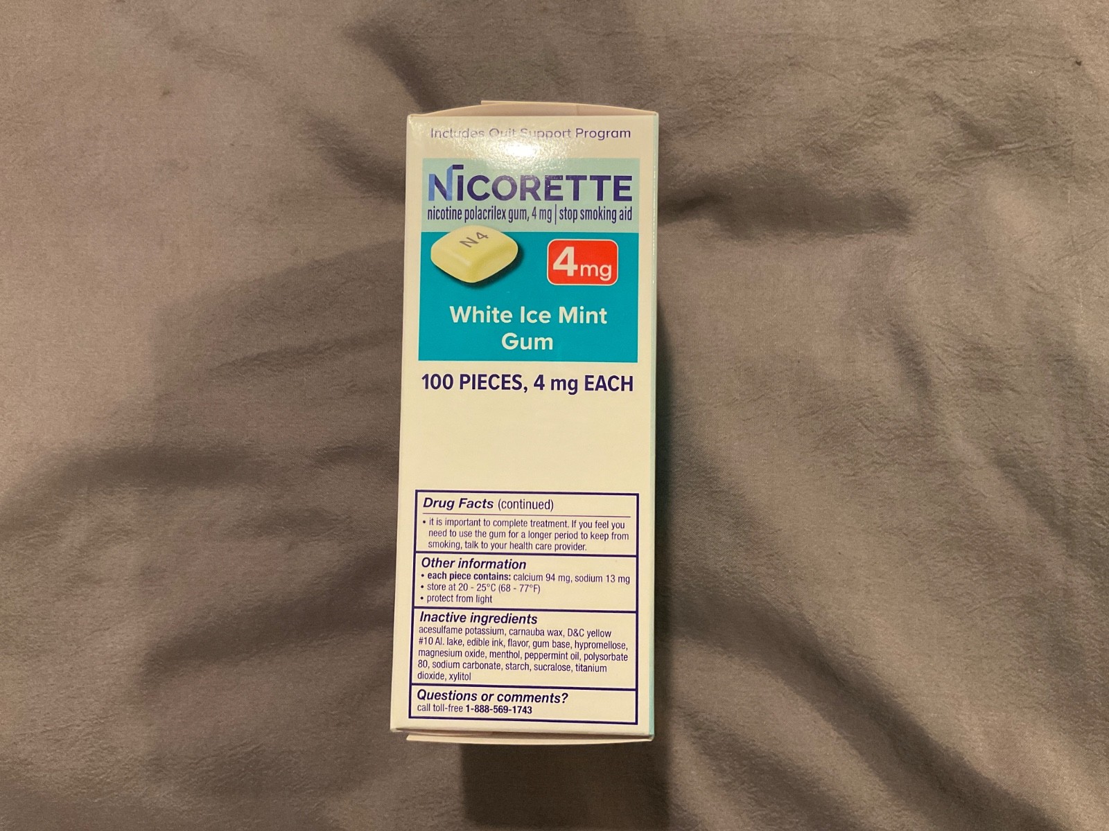 Nicorette Nicotine Polacrilex Gum 4mg White Ice Mint 100 Pieces 9/27 Exp