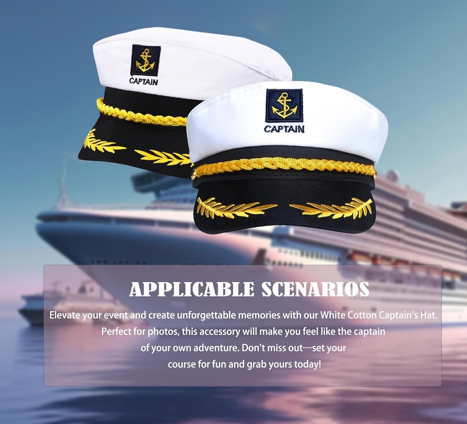 Captain Hat Sailor Skipper Cap - Adjustable Marines Style Costume Accessory...