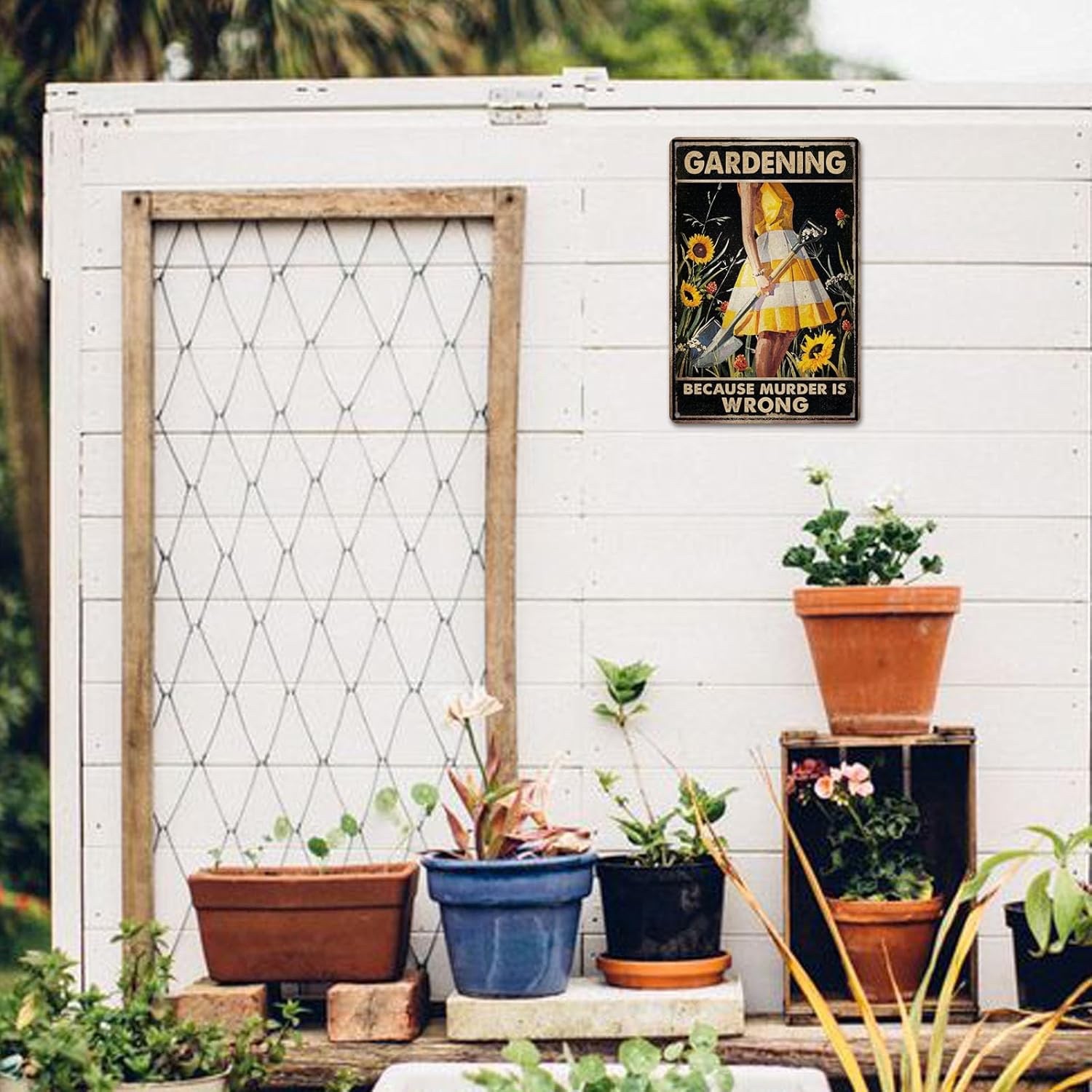 Funny Gardening Because Murder Is Wrong Metal Sign Yard Backyard 12 x 8