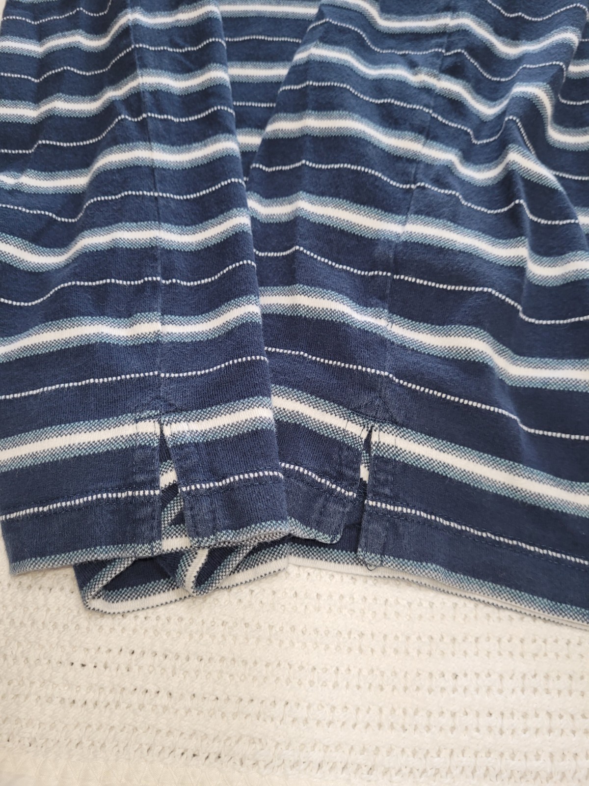как выглядит Mens Columbia Polo Shirt Adult Large Blue Striped Omni-Shade Short Sleeve фото