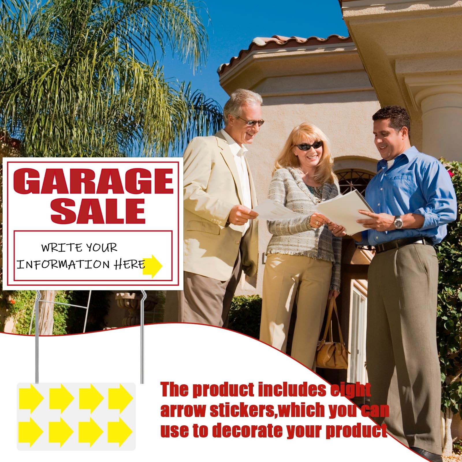 4-Pack 17x13 White Garage Sale Signs with Metal Stakes Double Sided