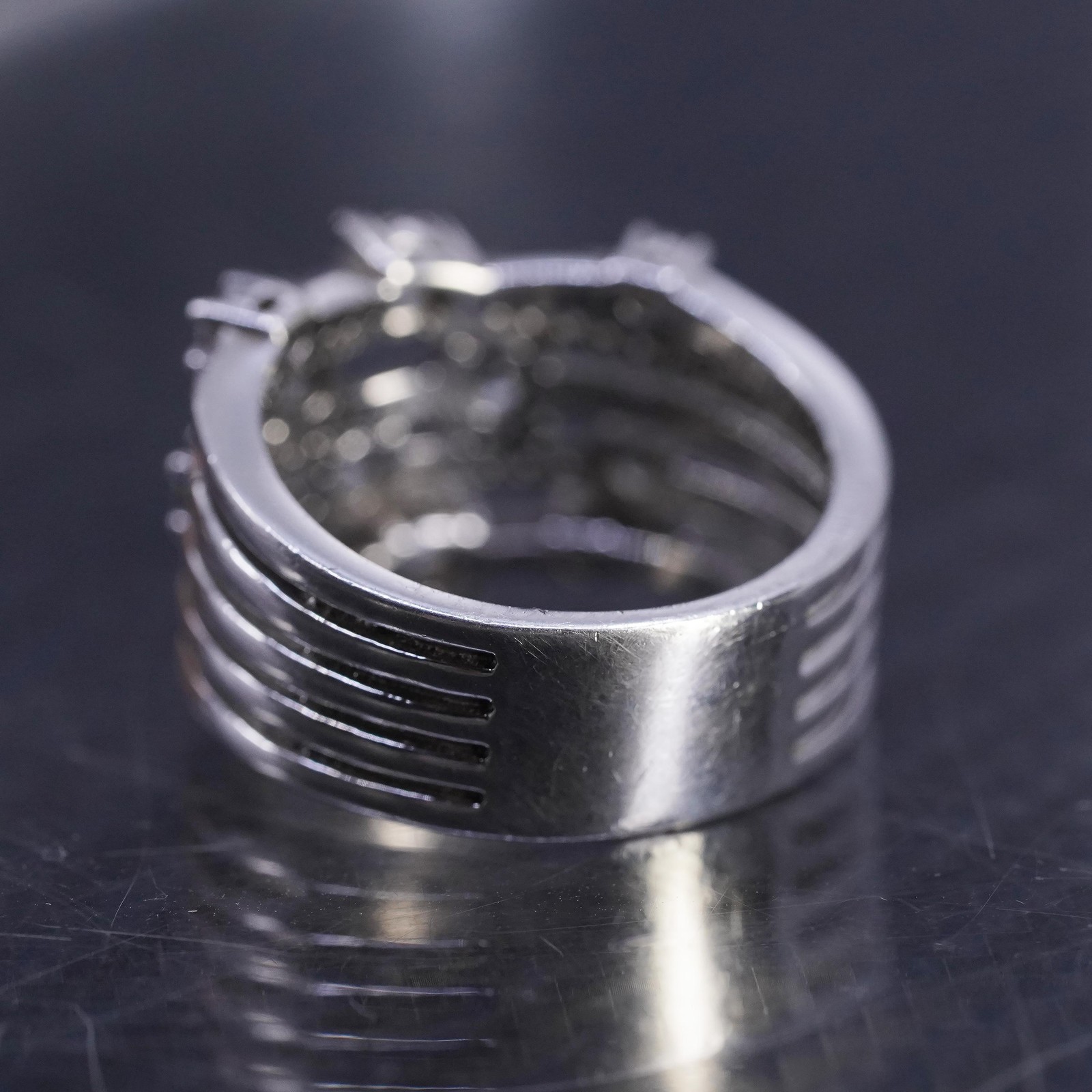 как выглядит Size 7, vintage sterling silver 925 swirly band ring with cluster cz фото