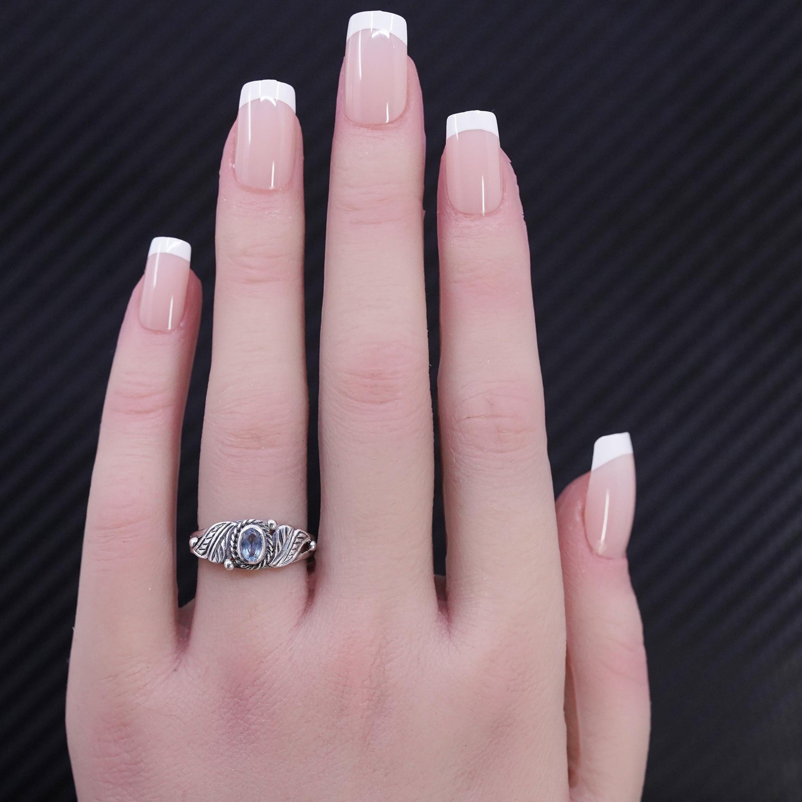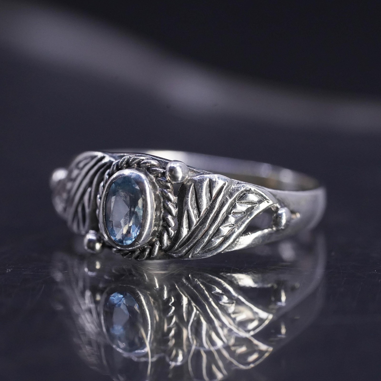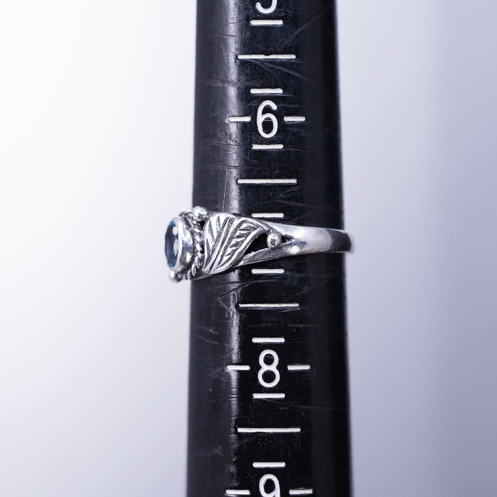 как выглядит Size 7, vintage sterling silver 925 handmade band ring with blue topaz фото