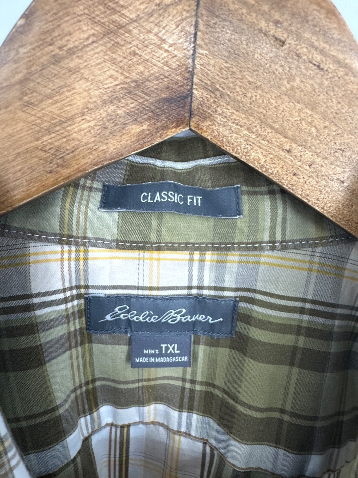 Eddie Bauer Mens Classic Fit Green Plaid Button-Down Long Sleeve Shirt Size TXL