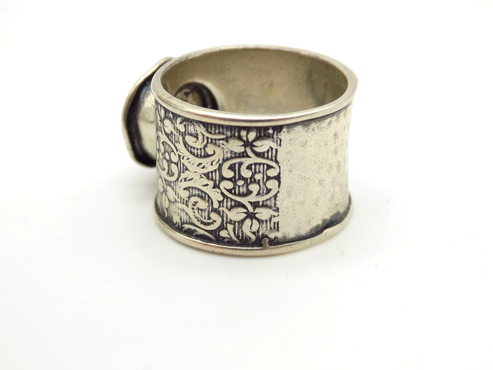 как выглядит Sterling Silver Designer Signed Real Pearl Ring Embossed Patern Sz 7 Wide Band фото
