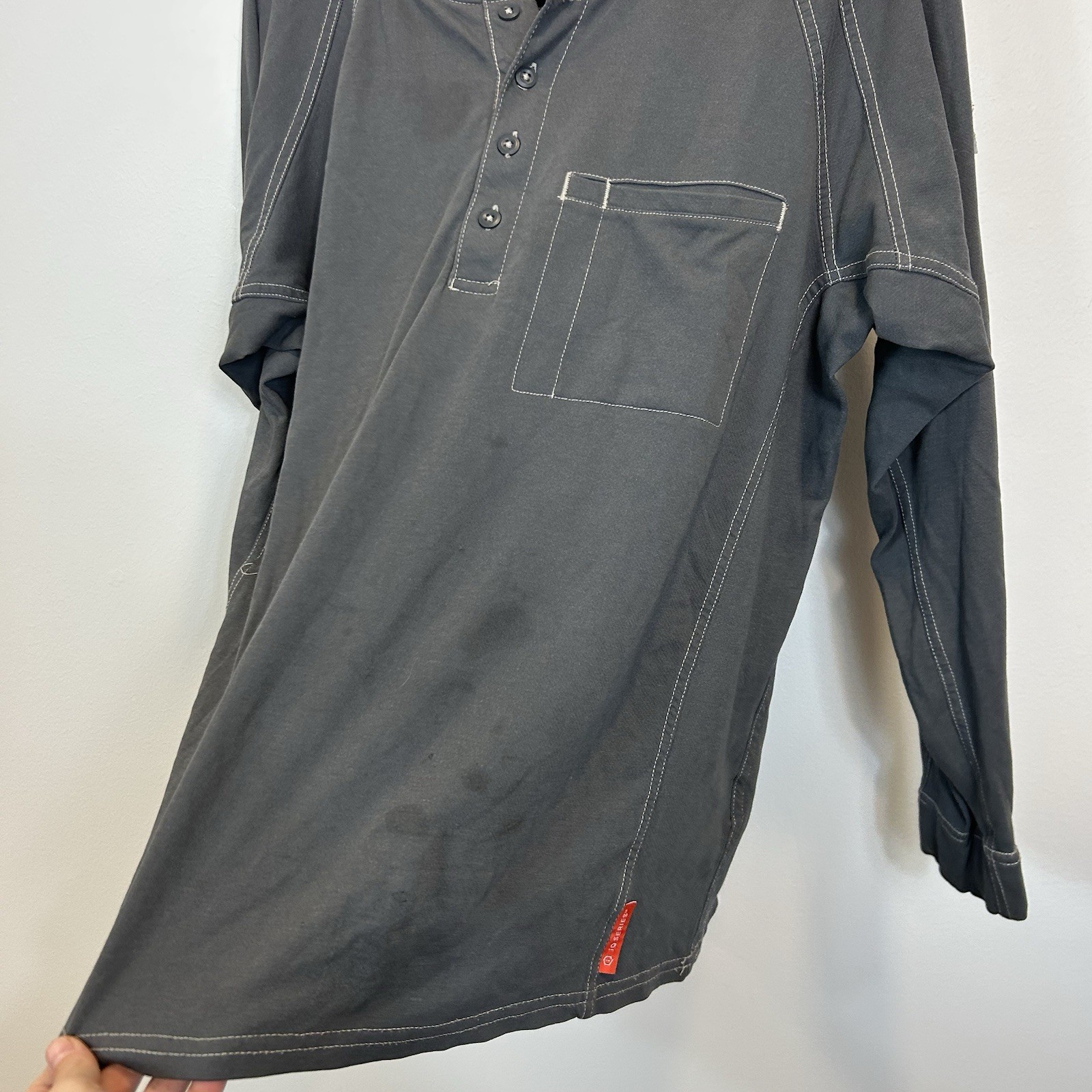 как выглядит Bulwark FR Mens LS Henley T-Shirt Medium Gray IQ Series Westex G2 CAT 2 2112 фото