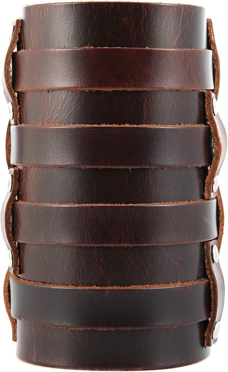 как выглядит Mens Leather Wide Triple Strap Cuff Wrap Gauntlet Wristband Buckle Fastening Arm фото