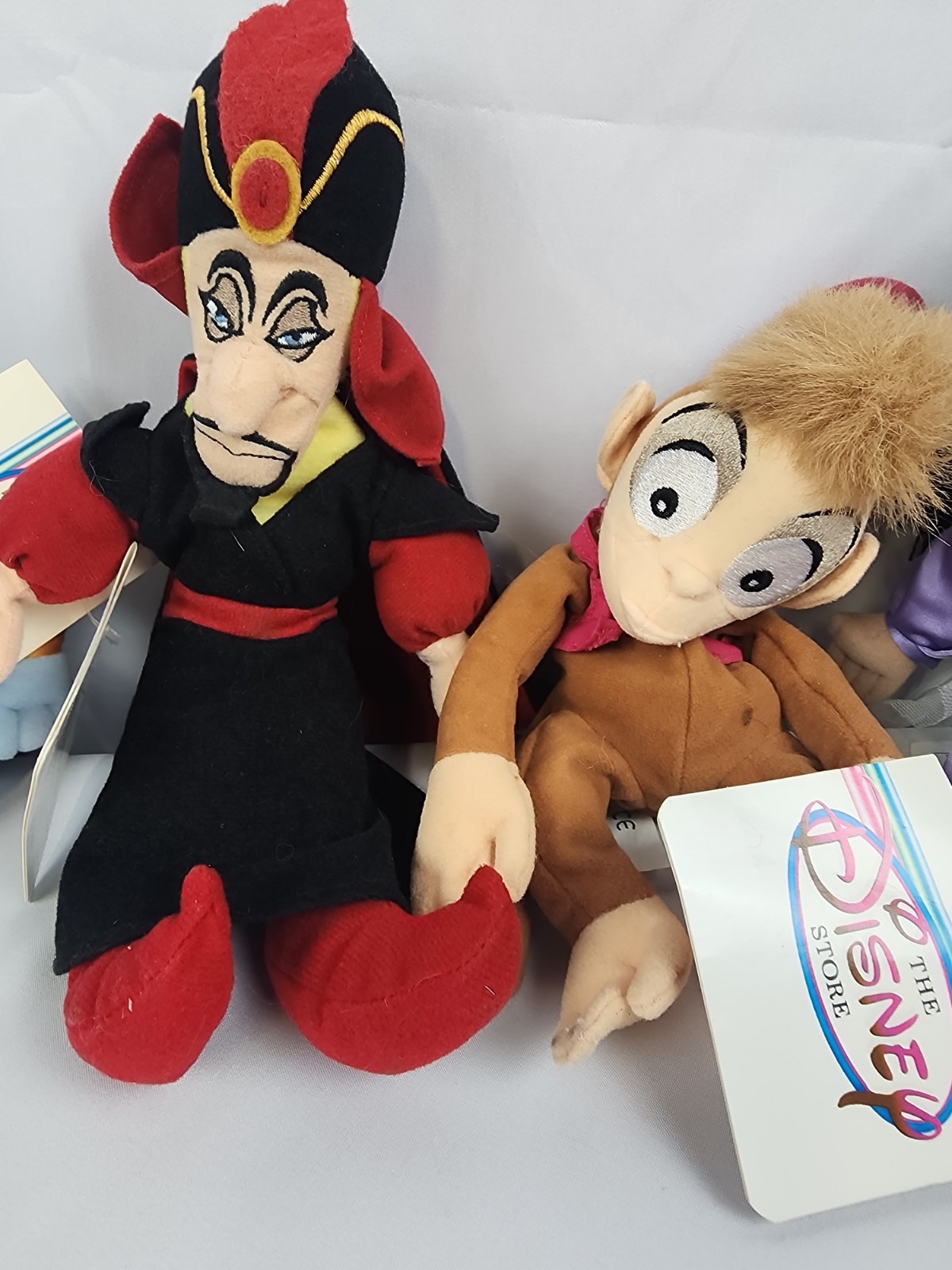 • Lot of 5 Disney store ALADDIN plush bean bag GENIE ABU JAFAR LAGO Jasmine tags