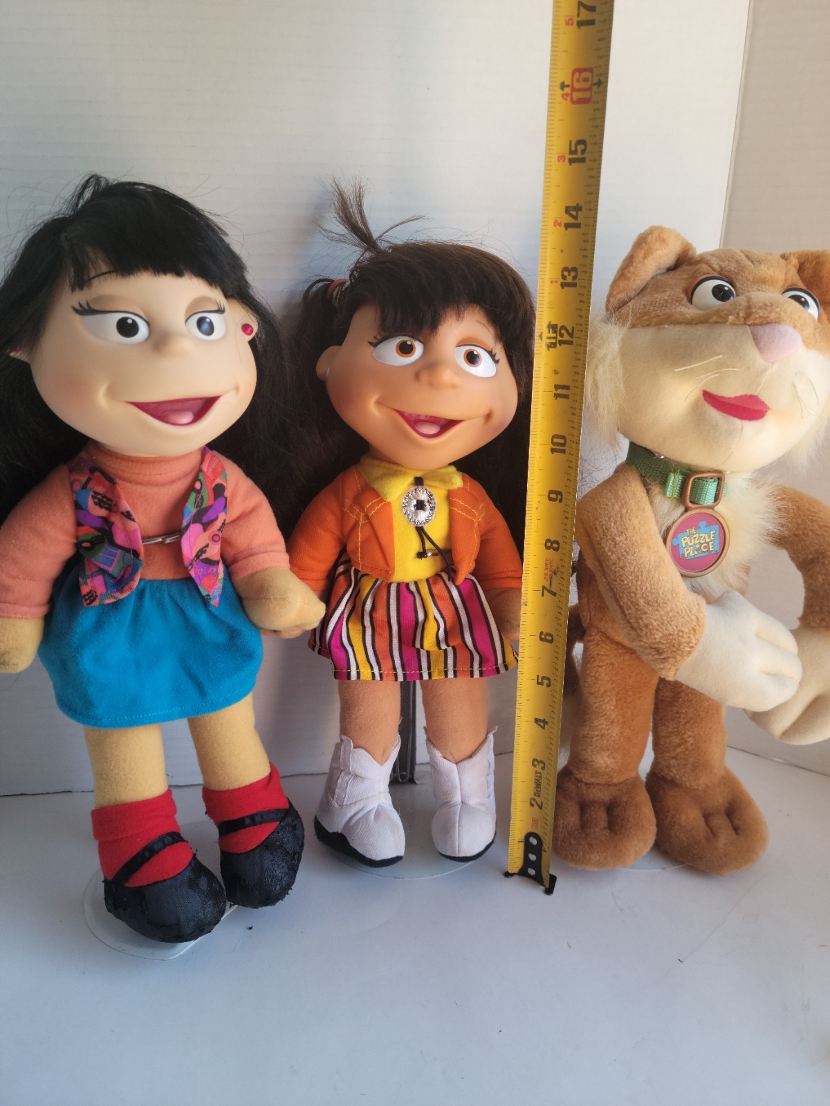 как выглядит Fisher Price The Puzzle Place Plush 3 Dolls PBS Julie Kiki Sizzle 1990s Vintage фото