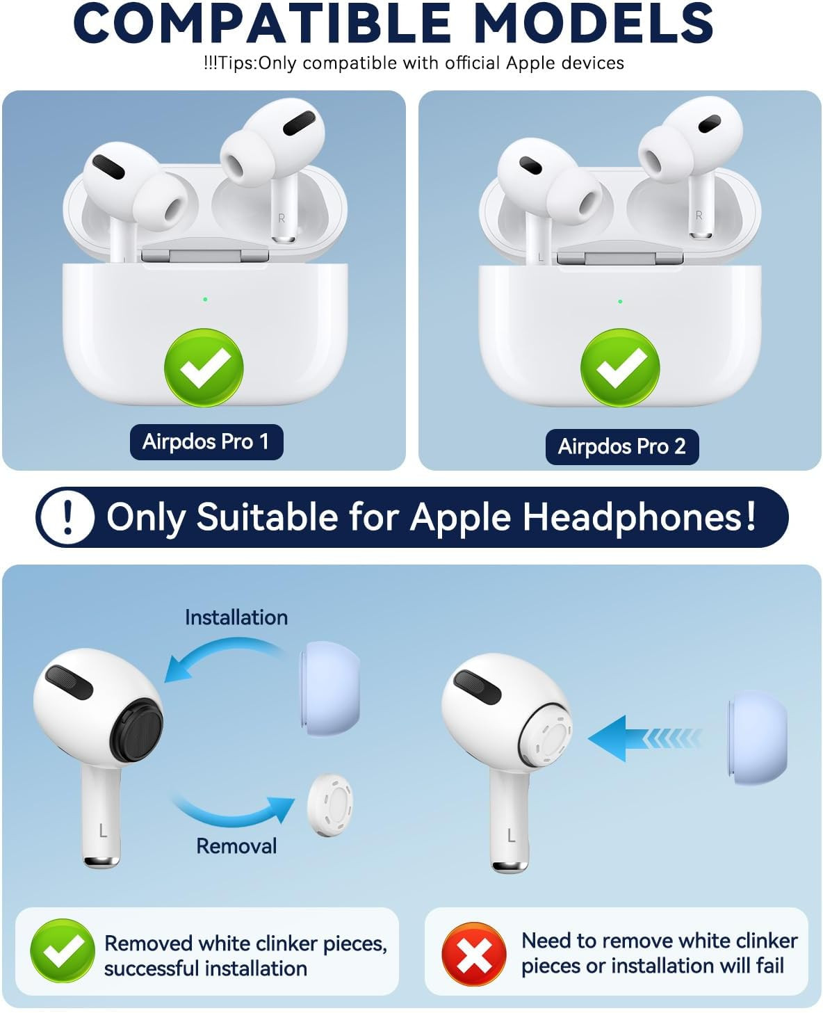 4 Pairs Replacement Ear Tips for Airpods Pro 2Nd/1St Generation with Cleaner Kit