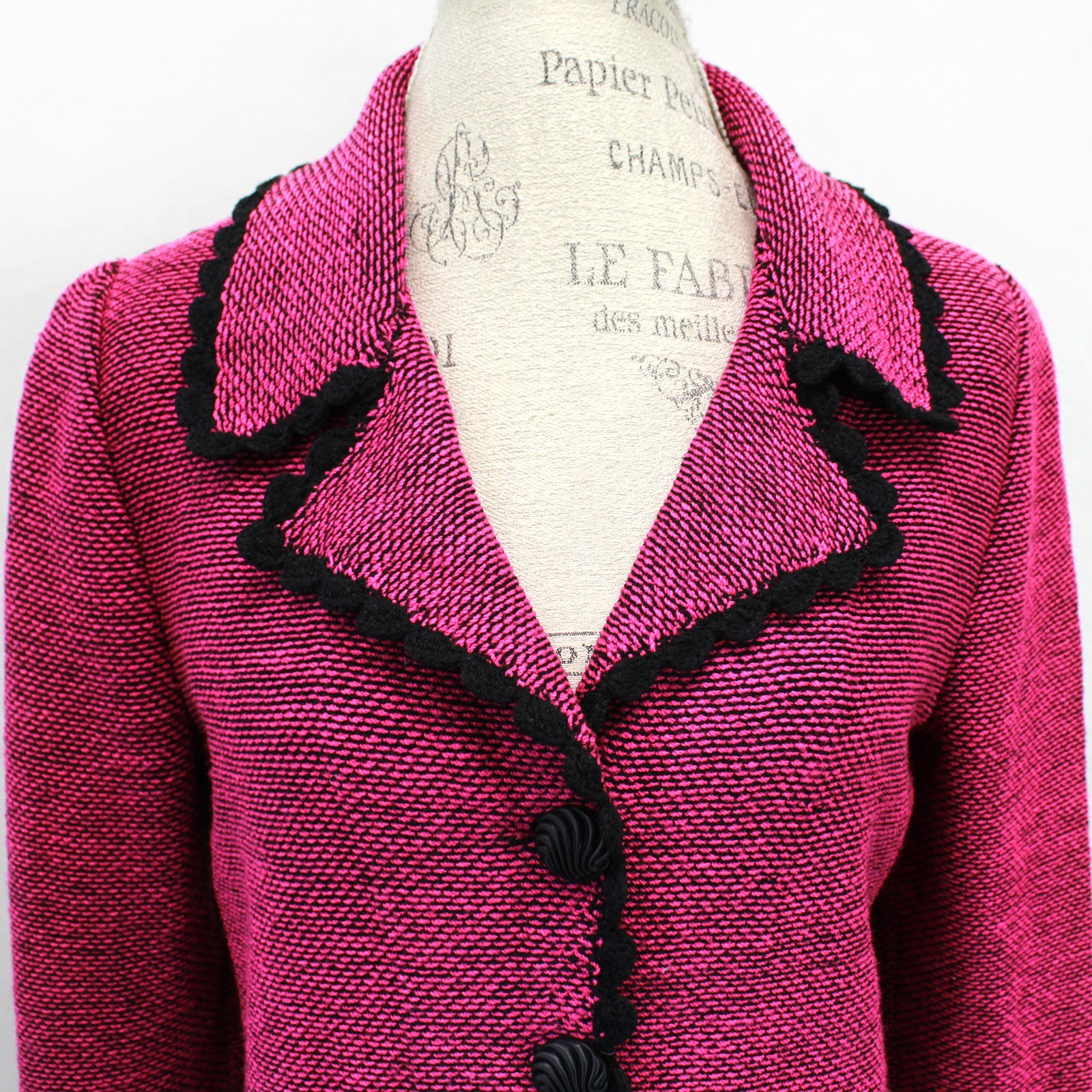 Vintage Pink Blazer Old Money Knit Cardigan Button Preppy Shoulder Pads USA M