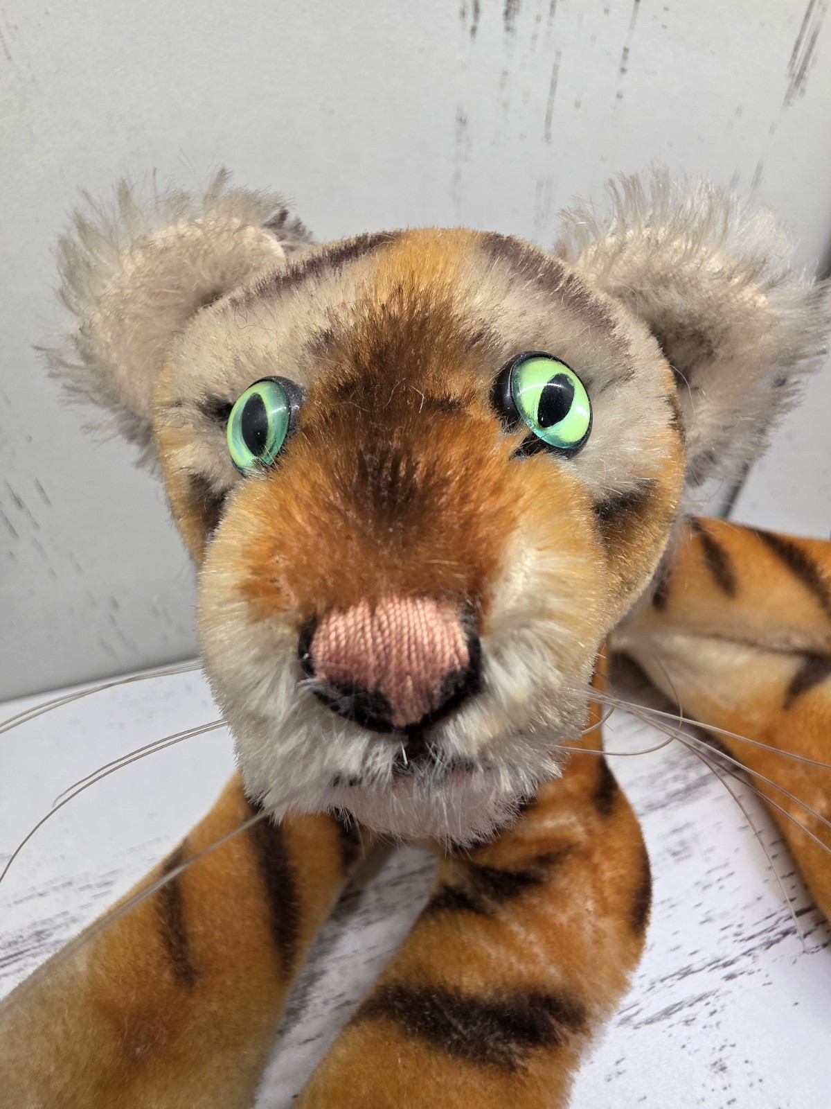 Mohair Reclining Tiger Cub Stuffed Animal Most Likely Steiff