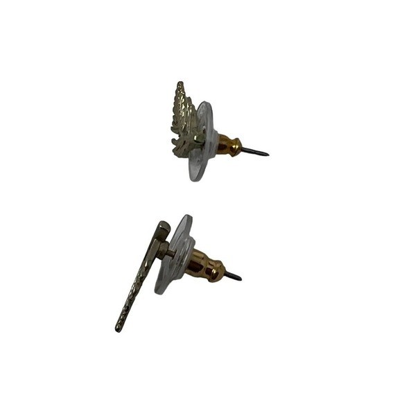 Vintage Leaf Earrings Gold Tone Feather Stud Pierced