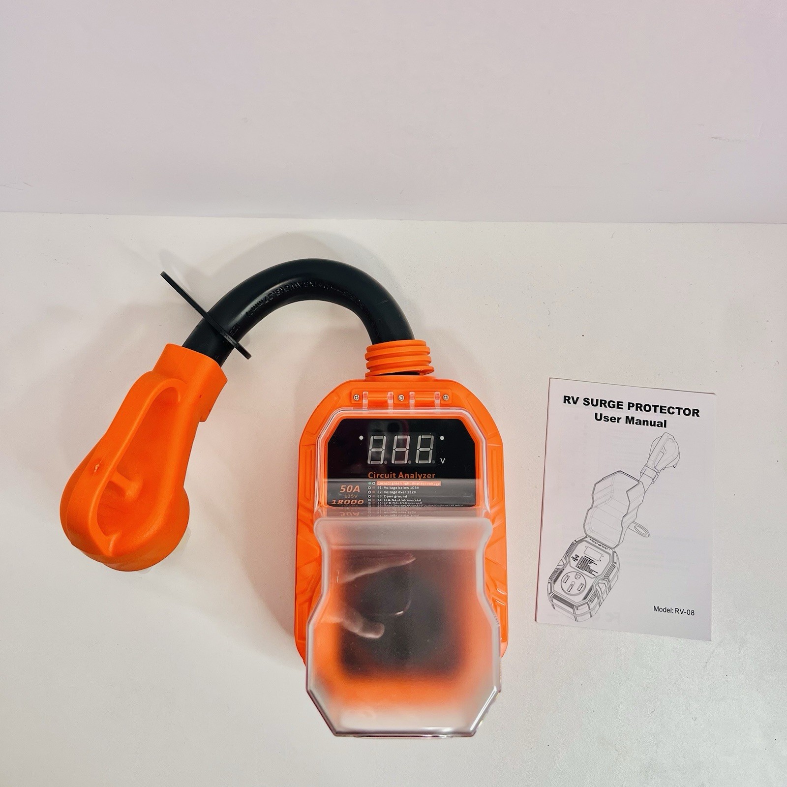 RV Surge Protector 50 Amp 18000 Joules with Voltage Monitor Waterproof Cover