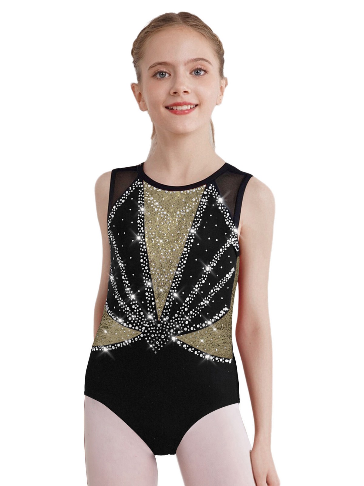 как выглядит Kids Girls Unitard Rhinestone Bodysuit Dance Leotard Sleeveless Rompers Stage фото