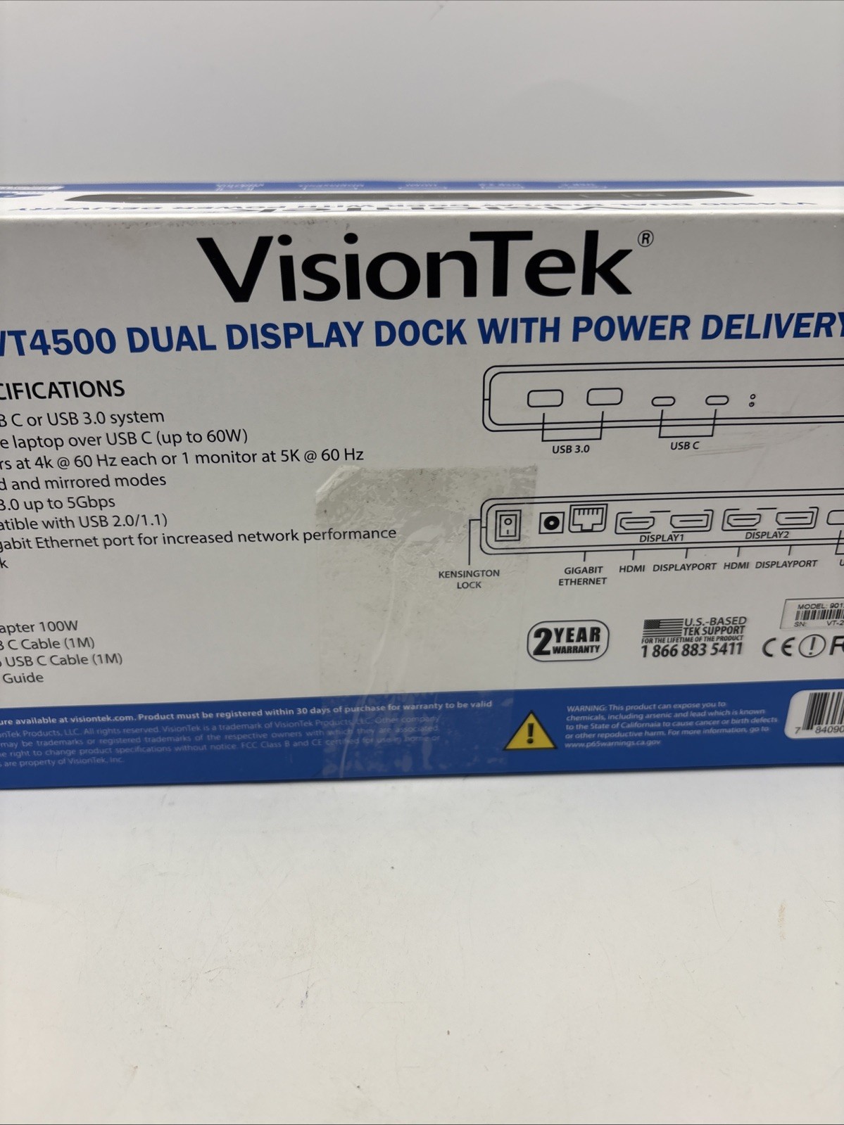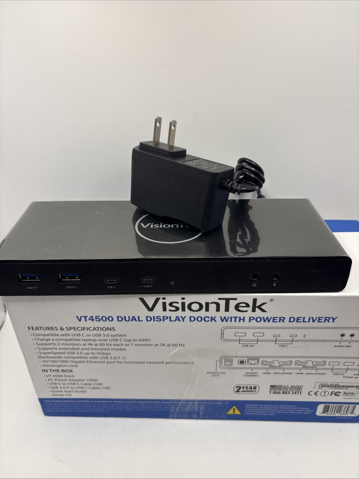 VisionTek VT4500 Dual Display 4K USB 3.0 and USB-C Docking Station
