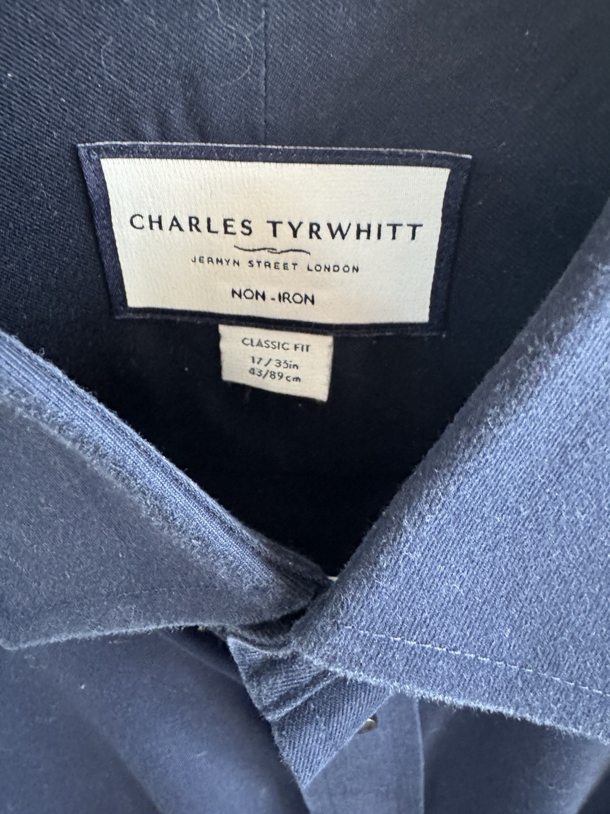 как выглядит Charles Tyrwhitt Blue Twill Shirt Mens 17/35 Button Down Classic Fit Non-Iron фото