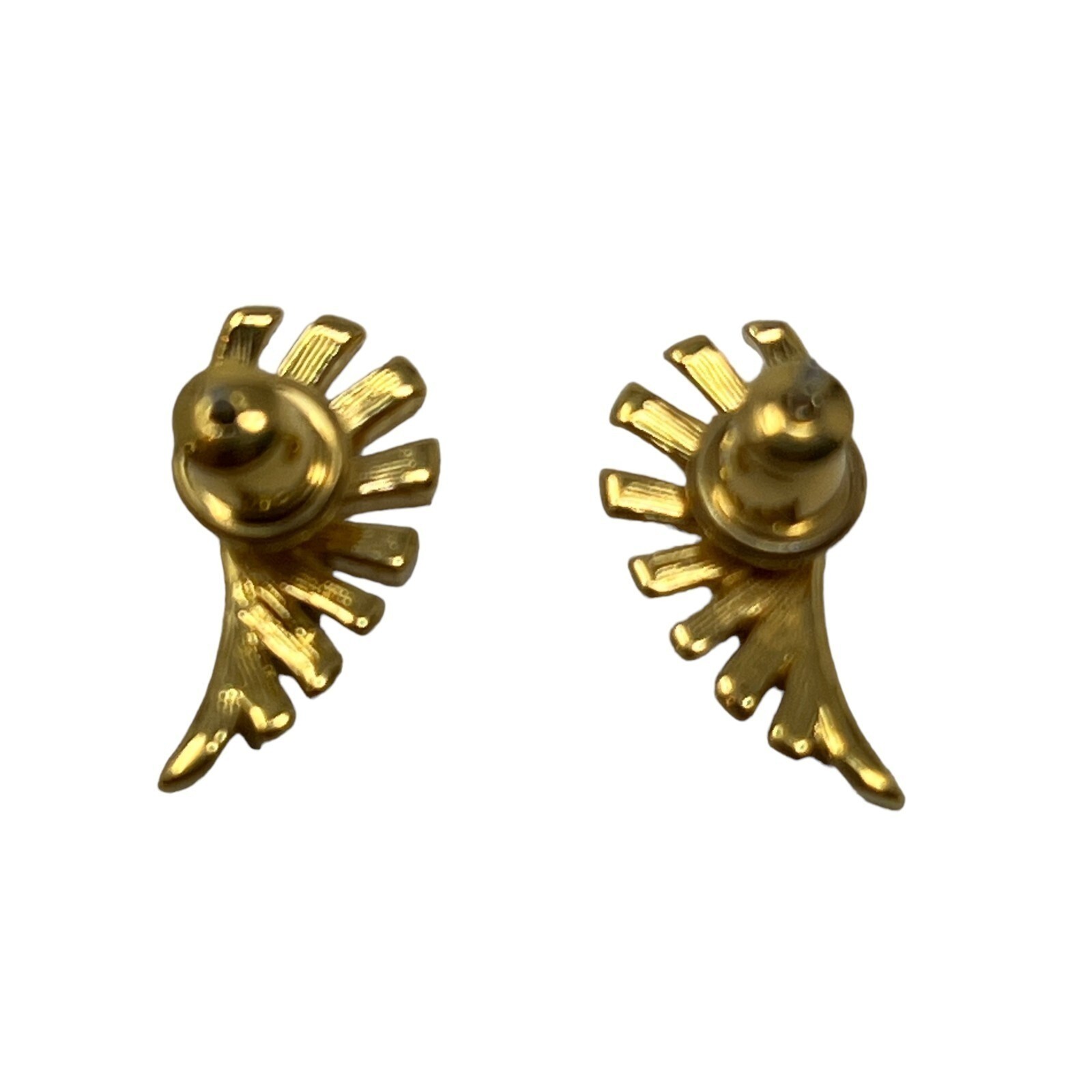 как выглядит Vintage Pierced Earrings Gold Tone Feather Leaf Stud фото