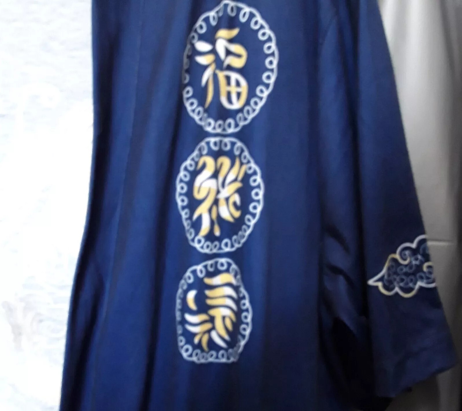 как выглядит Kimono Size L Blue Robe Asian inspired Dragon images w/Belt 2Pocket Flaw Stain фото