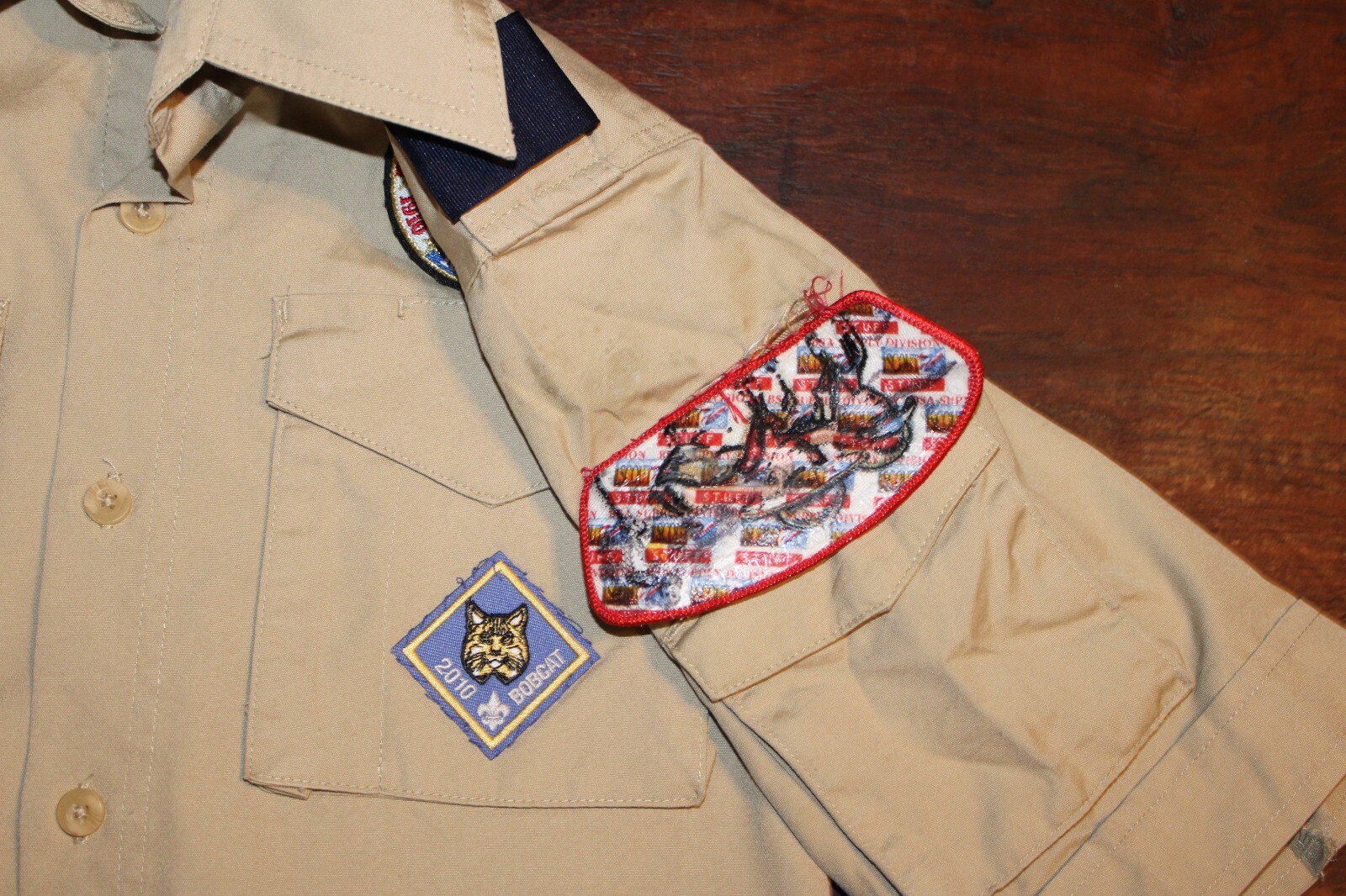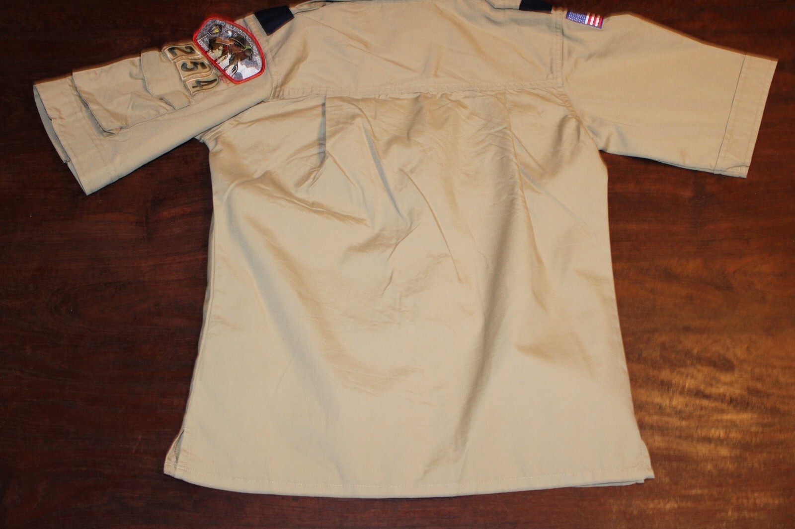 как выглядит Boy Scouts of America BSA Youth Shirt Medium Tan Sewn Patches Short Sleeve фото
