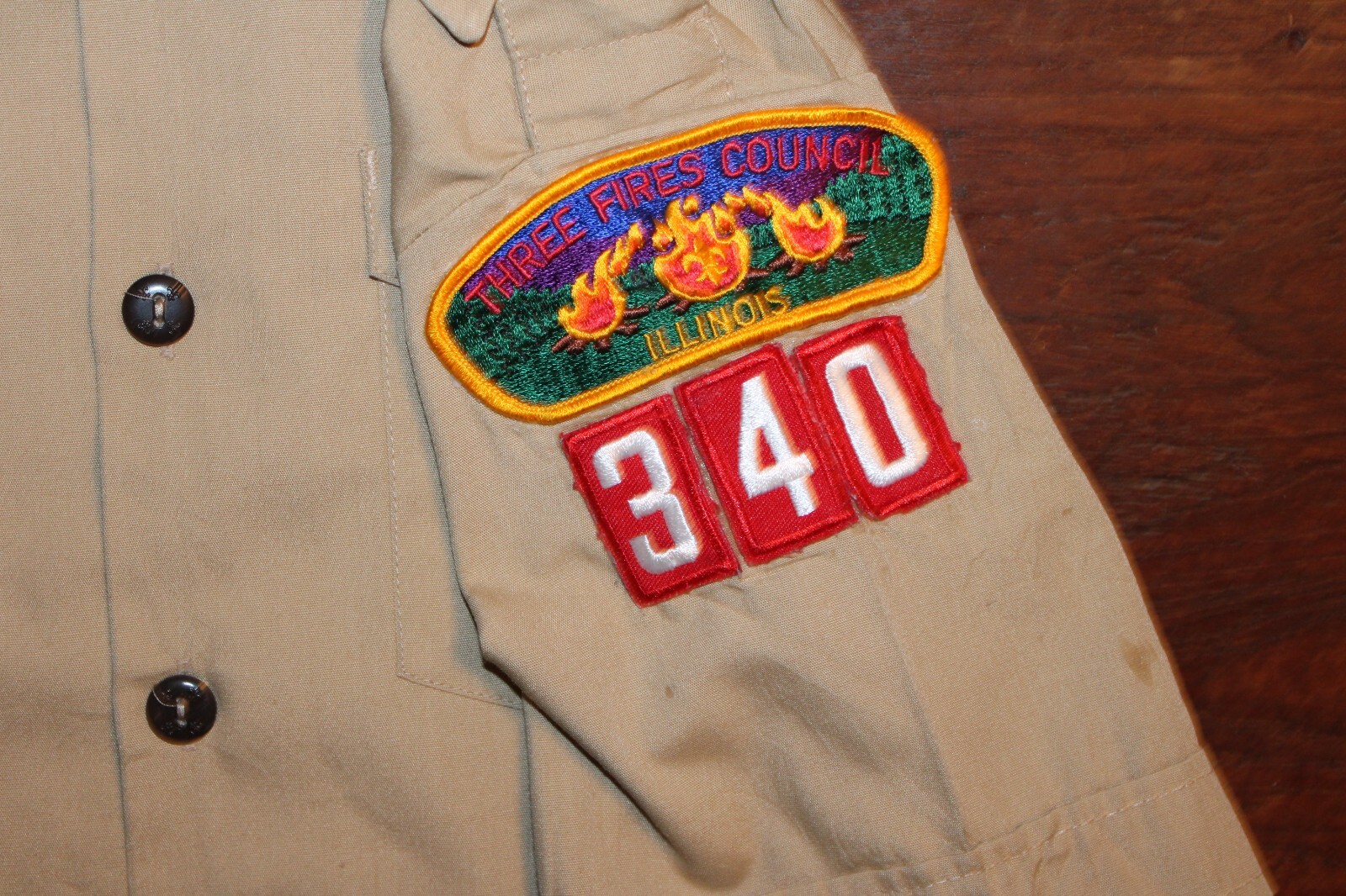 как выглядит Boy Scouts of America BSA Youth Shirt Large Tan Sewn Patches Short Sleeve фото