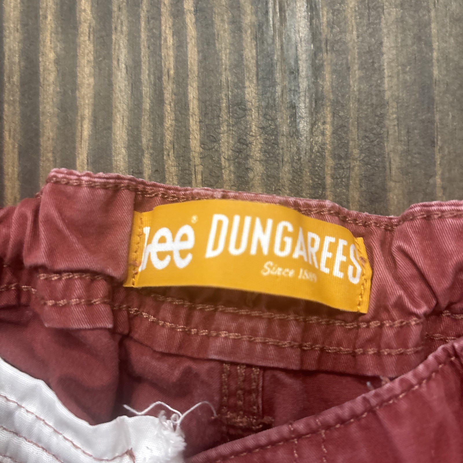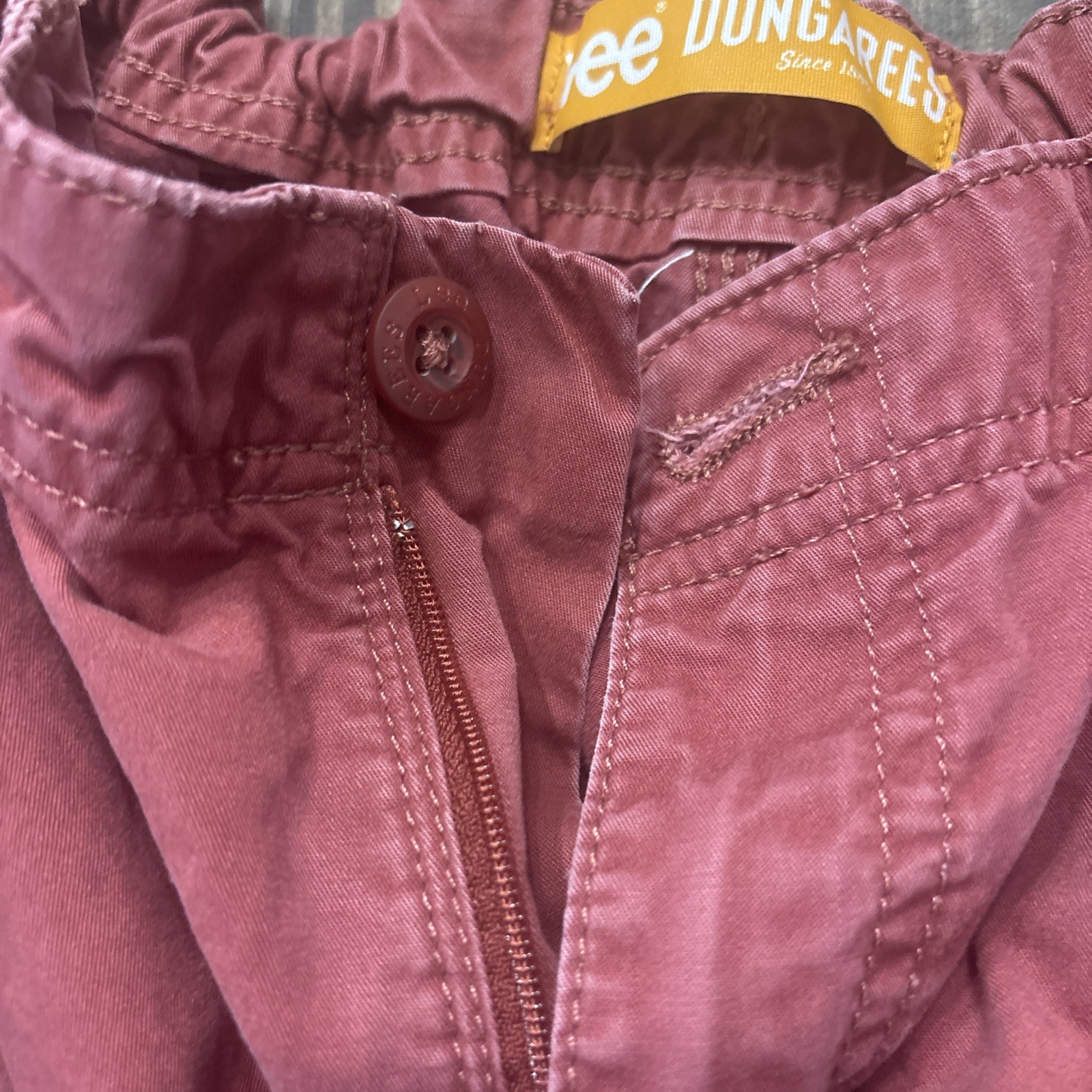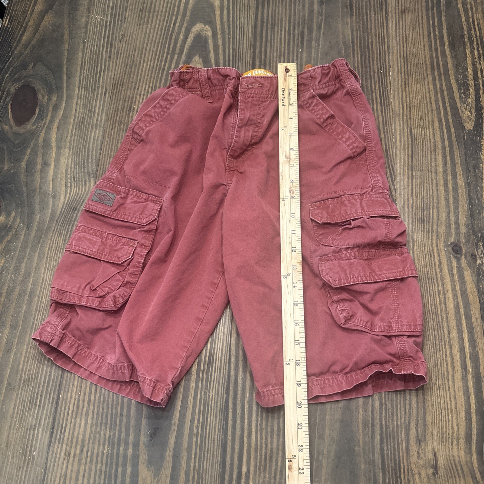 Boys Red Lee Dungarees Khaki Cargo Shorts Loose Size 14R Adjustable Waist