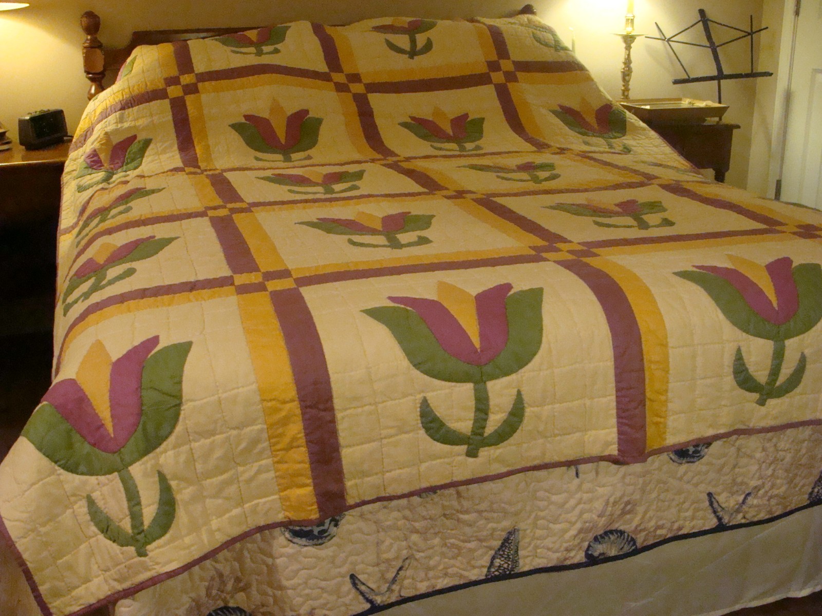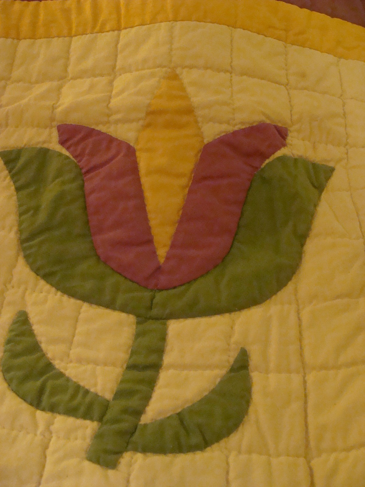 как выглядит ANTIQUE 1928 TULIP QUILT - VEGETABLE AND BERRIES HOMEMADE DYES фото